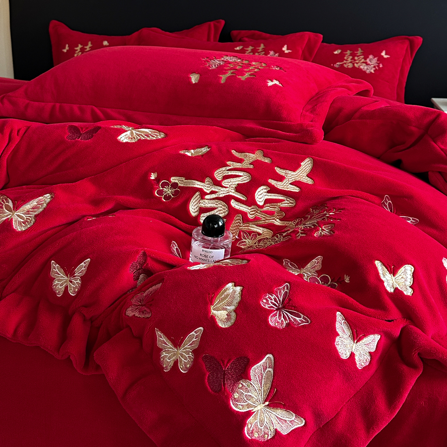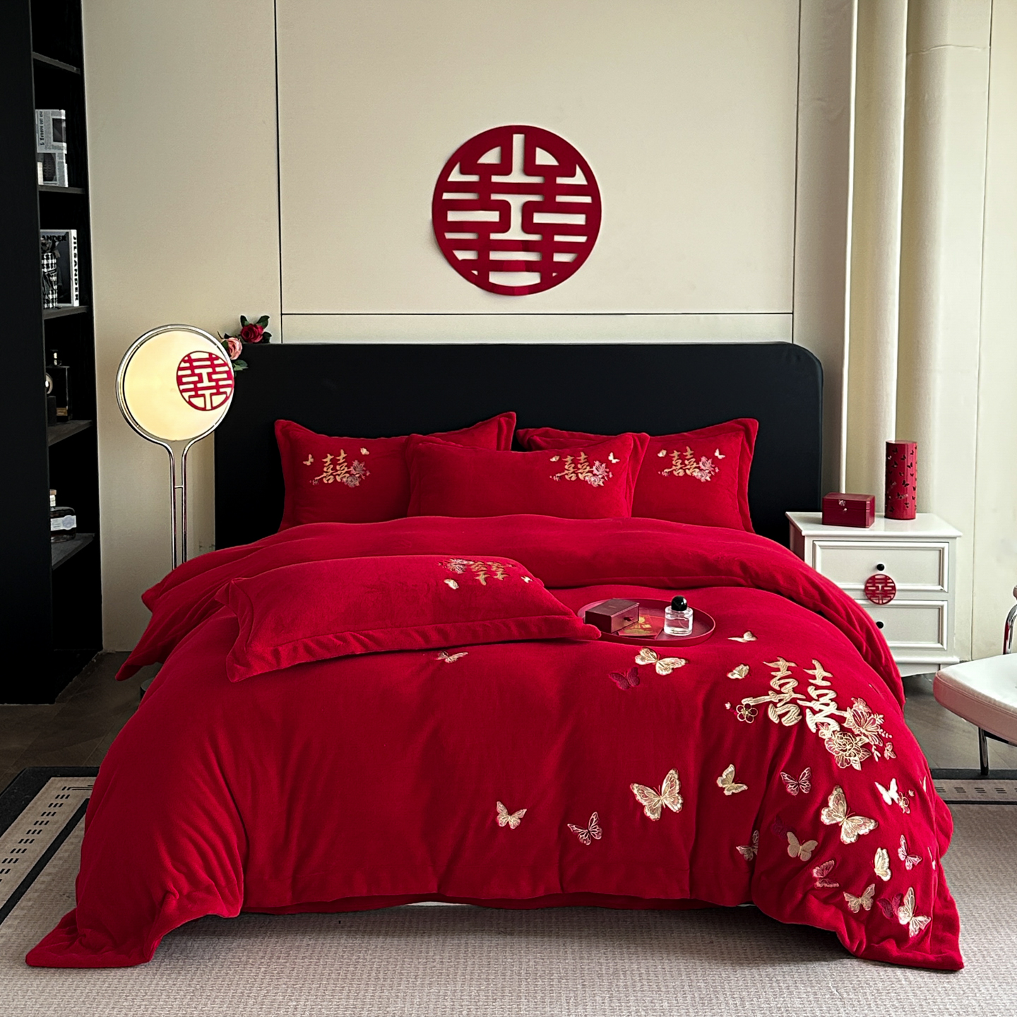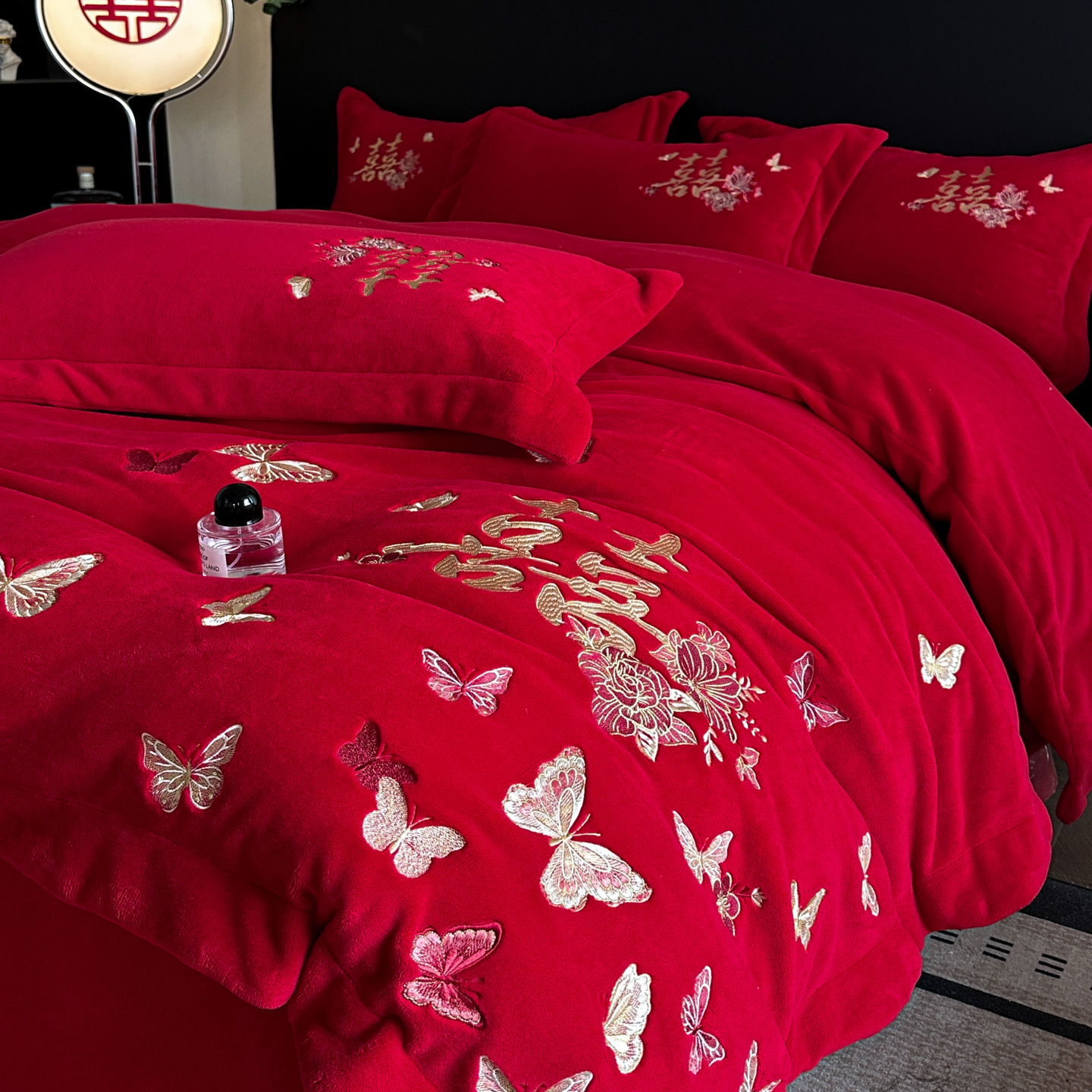 牛奶绒四件套红色珊瑚绒结婚喜被套新婚陪嫁婚庆床上用品婚房床单