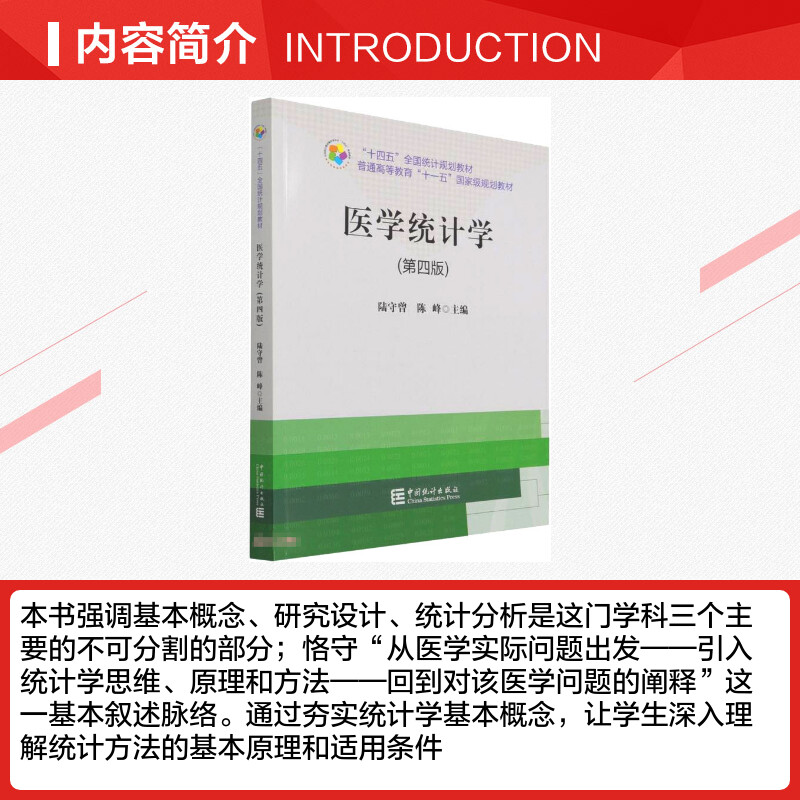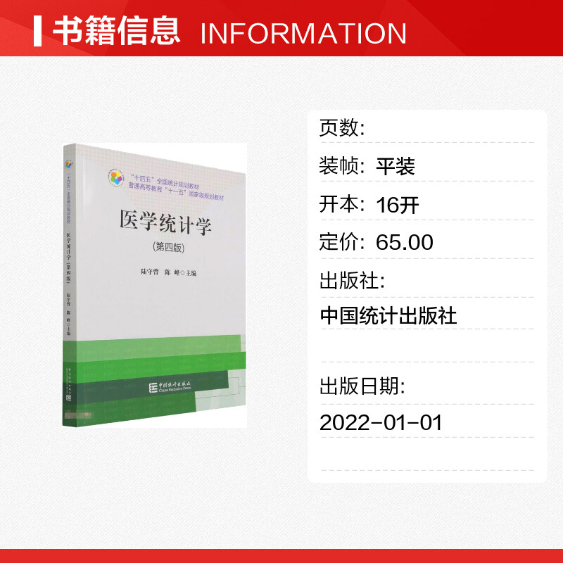 “十四五”规划教材:医学统计学(第四版) 陆守曾 陈峰 著 大学教材经管、励志 新华书店正版图书籍 中国统计出版社