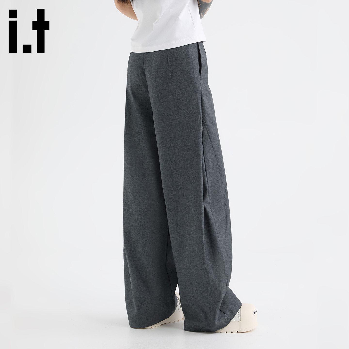 it :5cm/FIVECM灰色西裤休闲阔腿西装裤男女2025夏秋季轻职场长裤