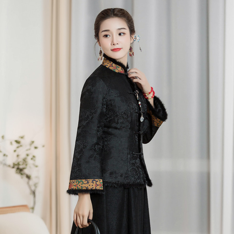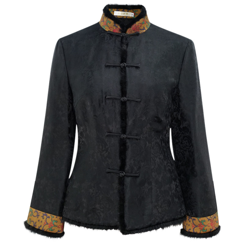 华族经典香云纱旗袍上衣2025秋冬款夹棉加厚中式复古对襟女士唐装