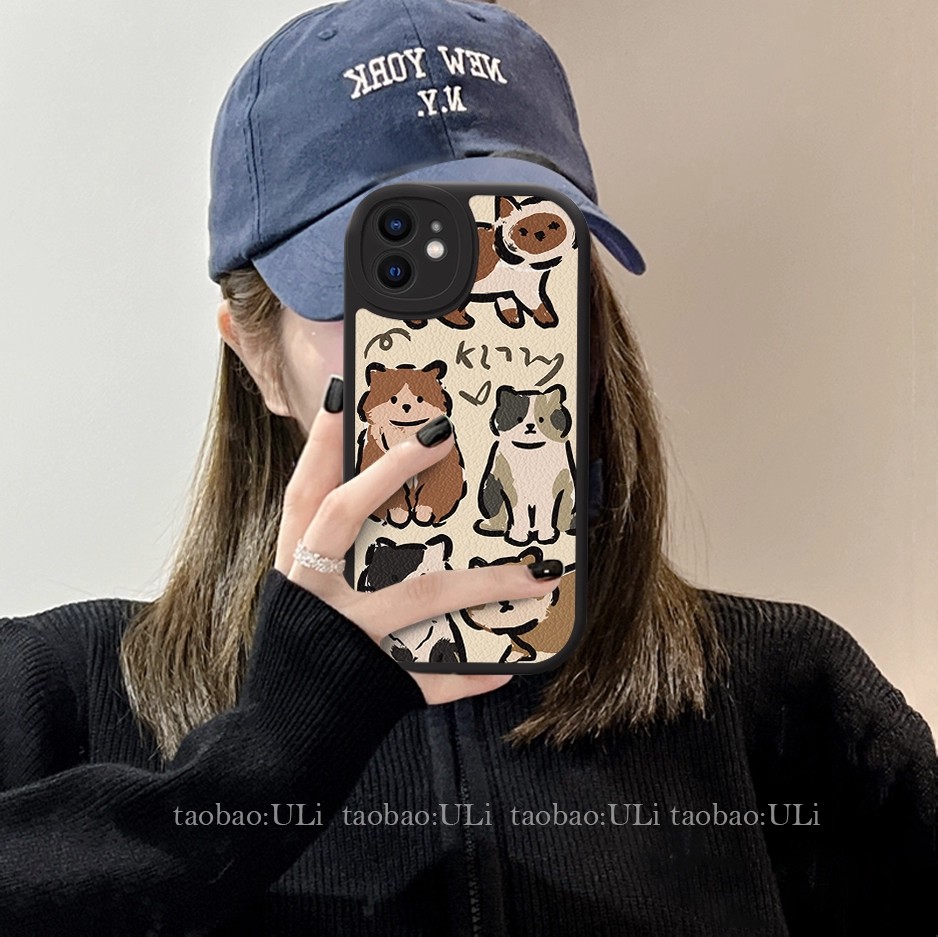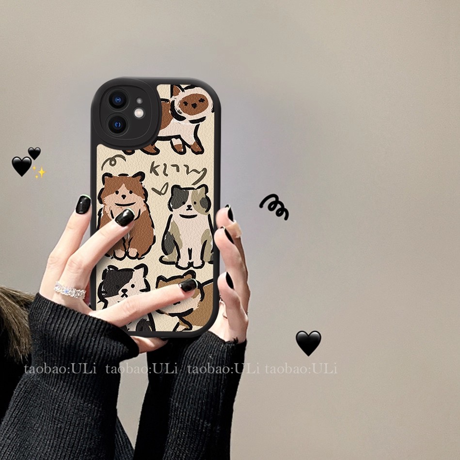情侣卡通猫咪狗狗适用小米15spro手机壳米14/13/12新款全包红米k80/k70皮革note15硅胶防摔turbo4男女保护套