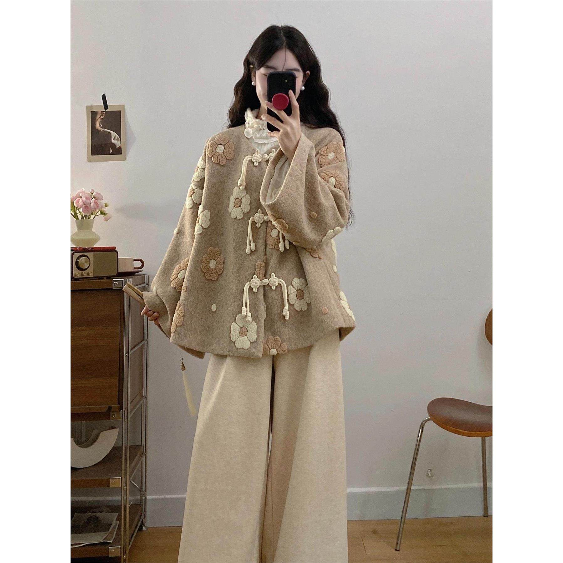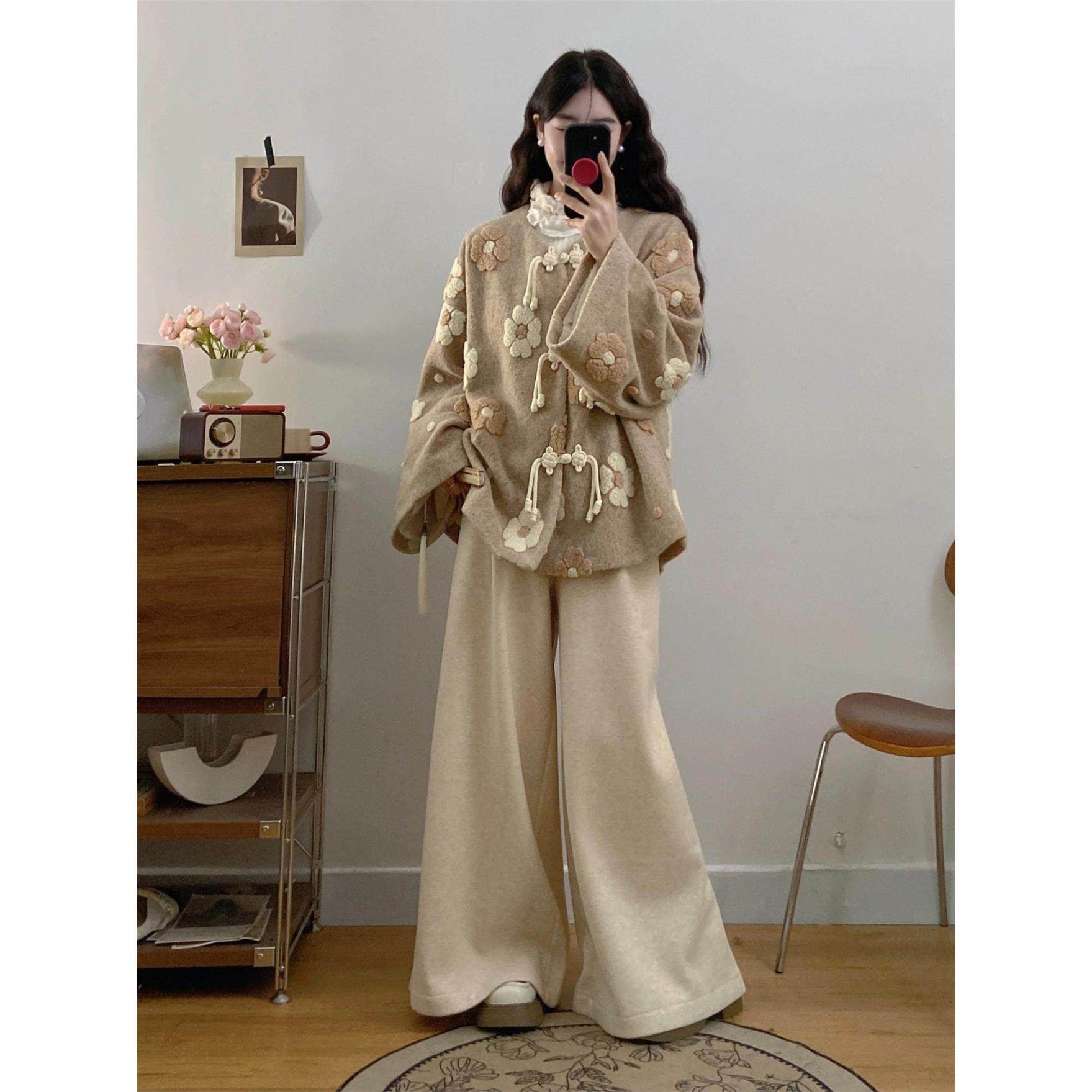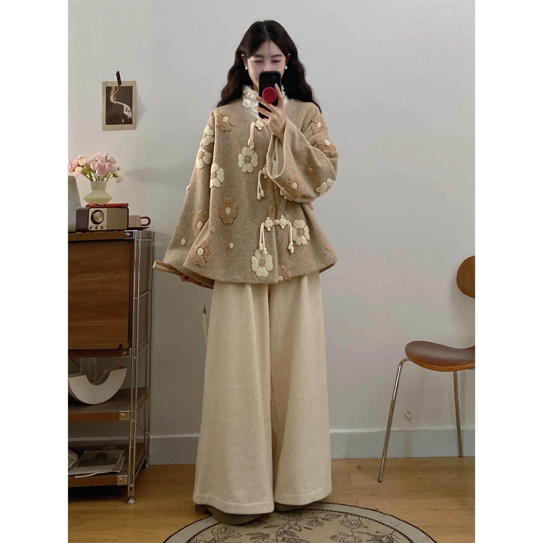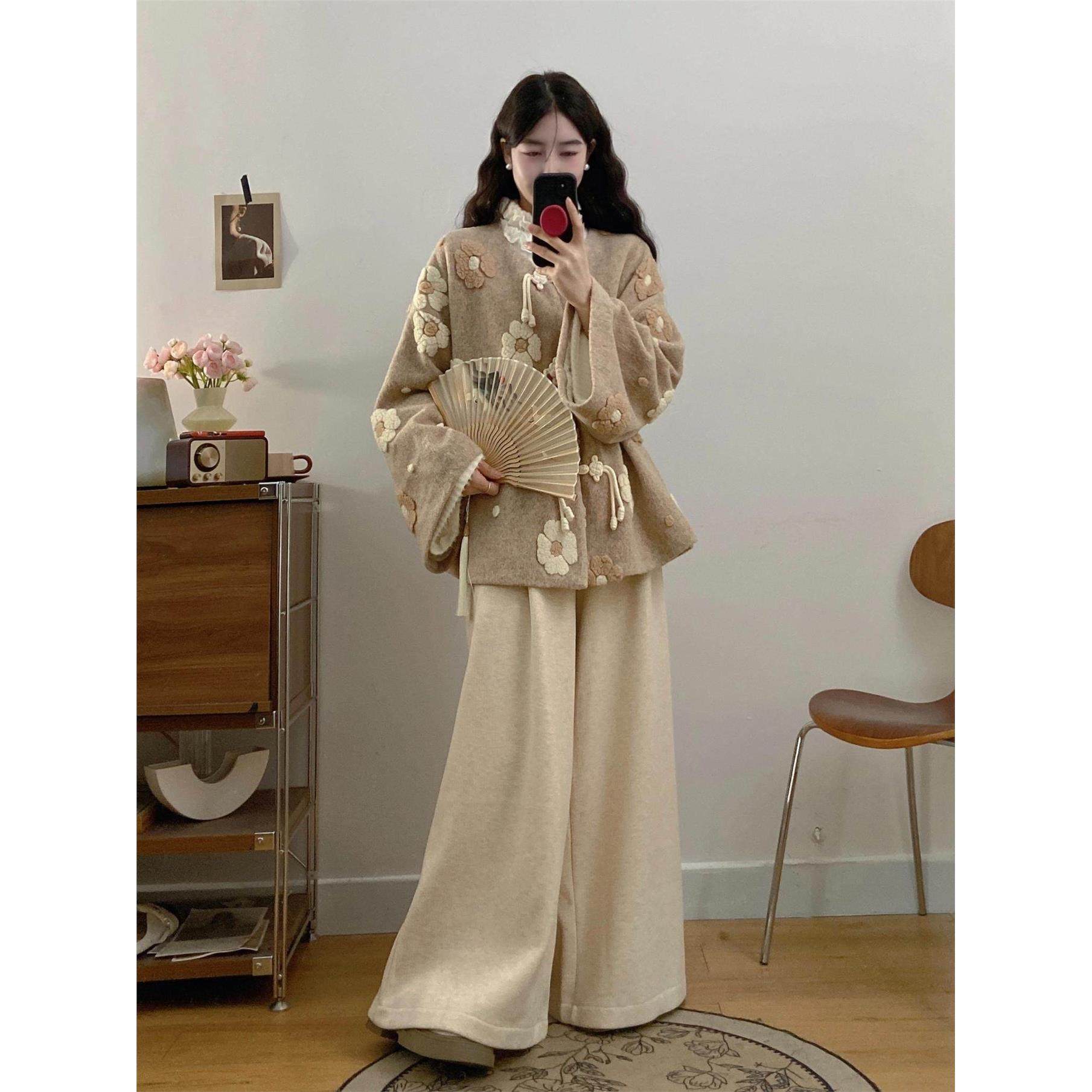 胖mm大码秋冬新中式套装