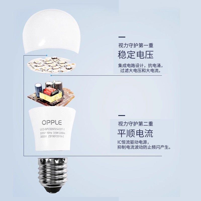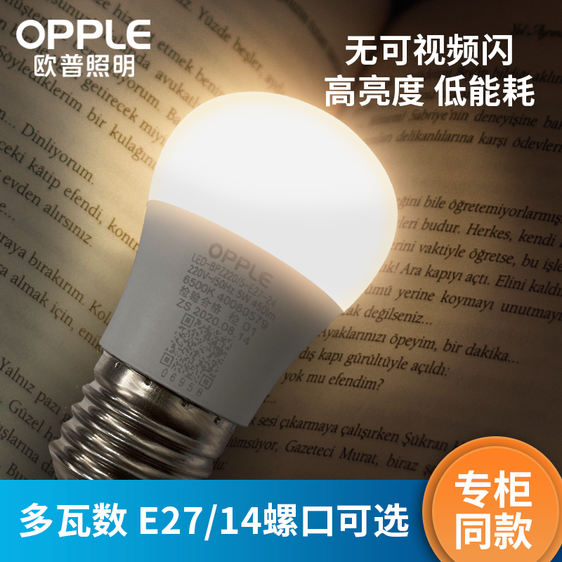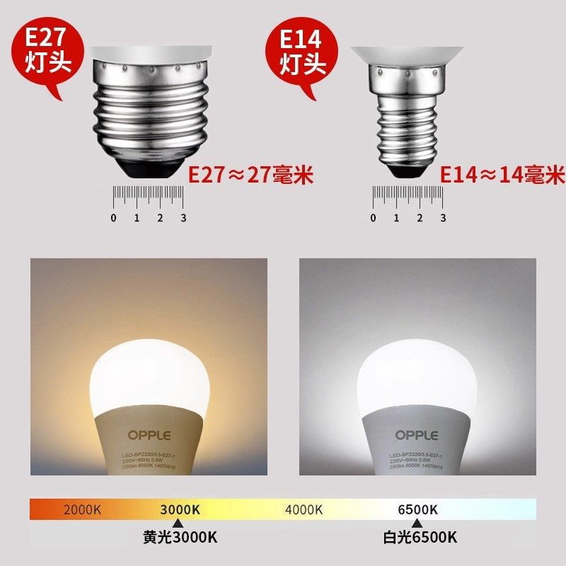 欧普led灯泡e14e27超亮照明大小螺口5W暖白光节能灯3只装台灯球泡