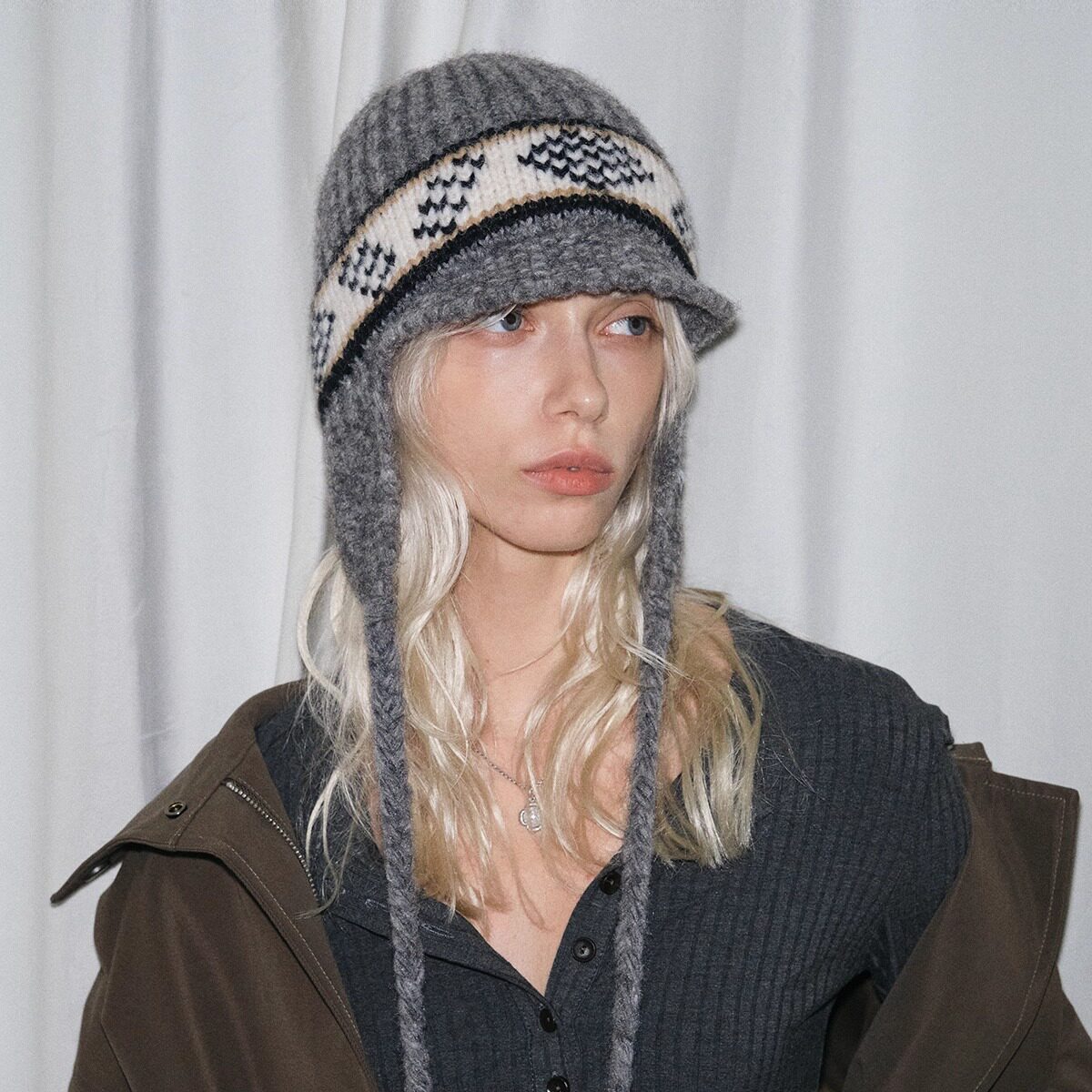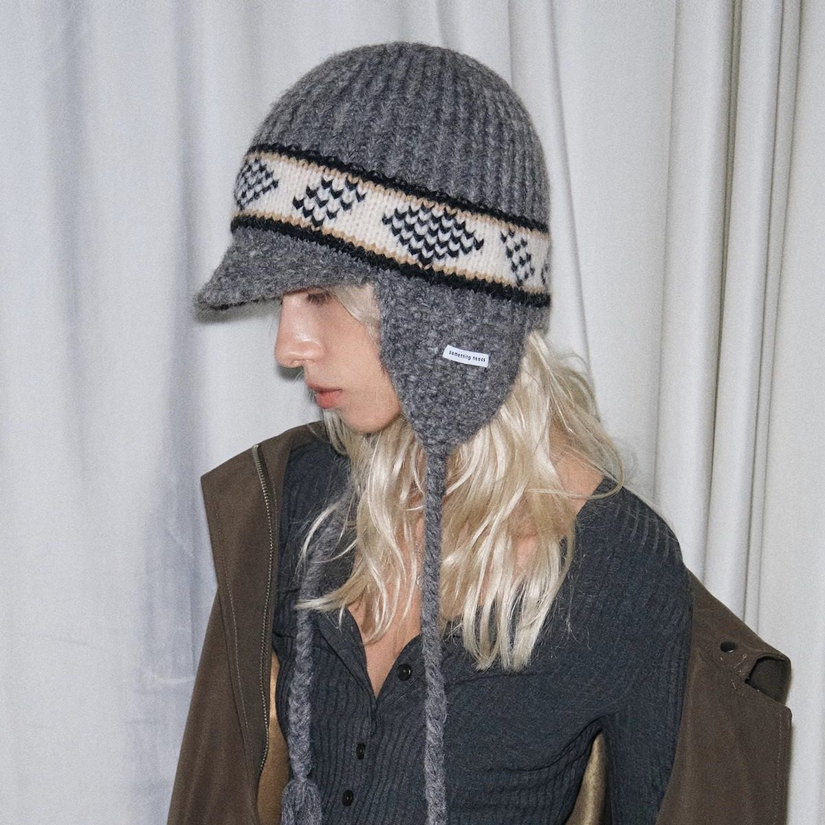 郑佰万 重工钩织软糯护耳帽冬季费尔岛提花雷锋帽小帽檐毛线帽女