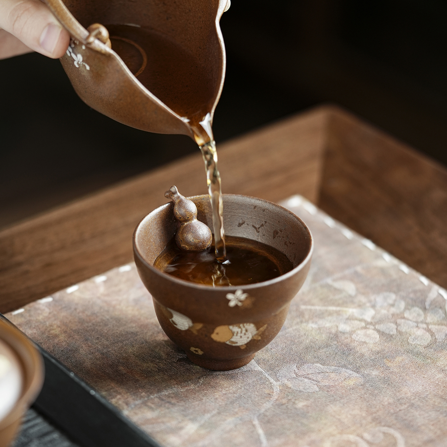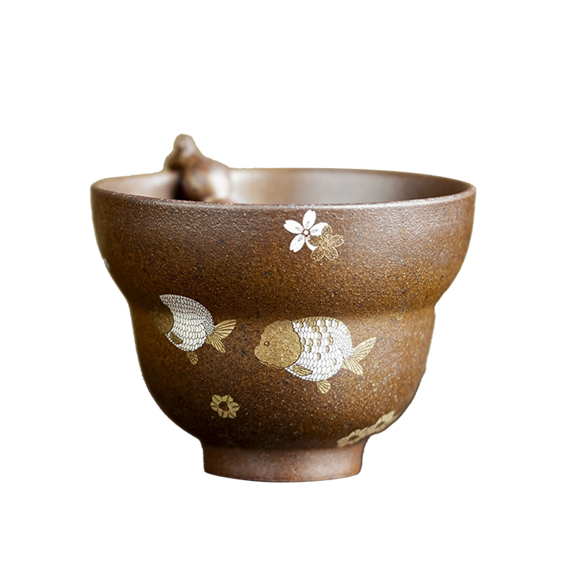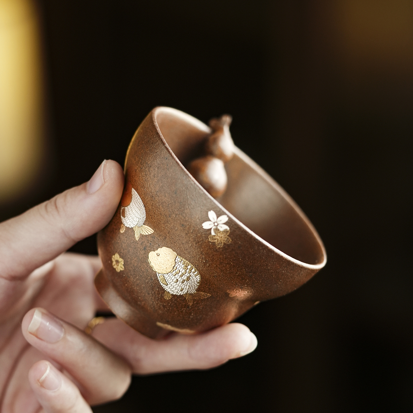 老岩泥花鱼嬉葫芦主人杯粗陶茶杯手工杯子个人专用品茗杯新式茶具