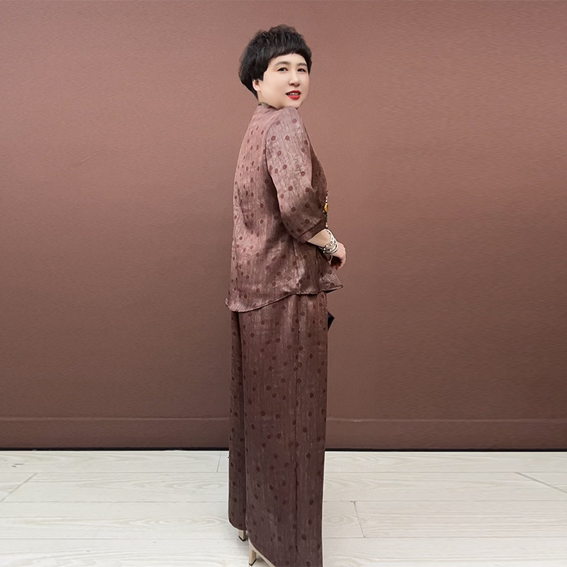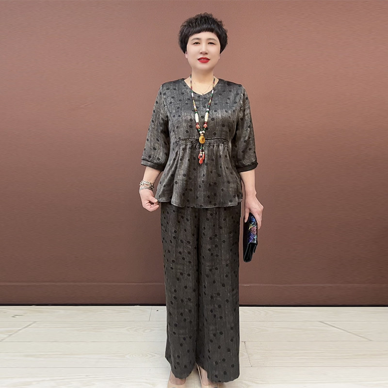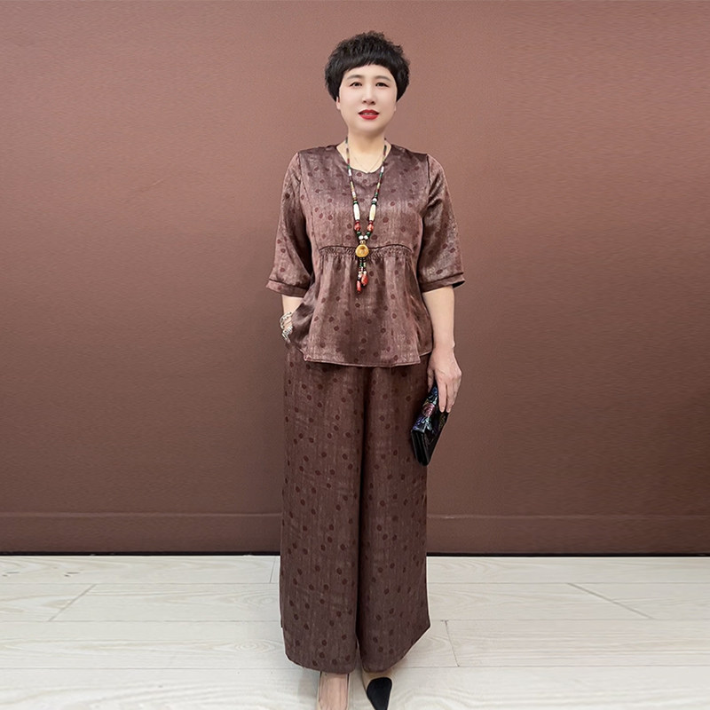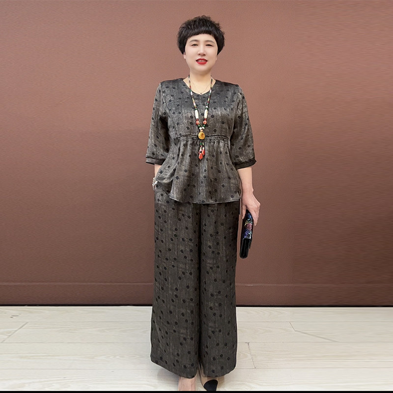 洋气妈妈真丝两件套夏季大码套裤