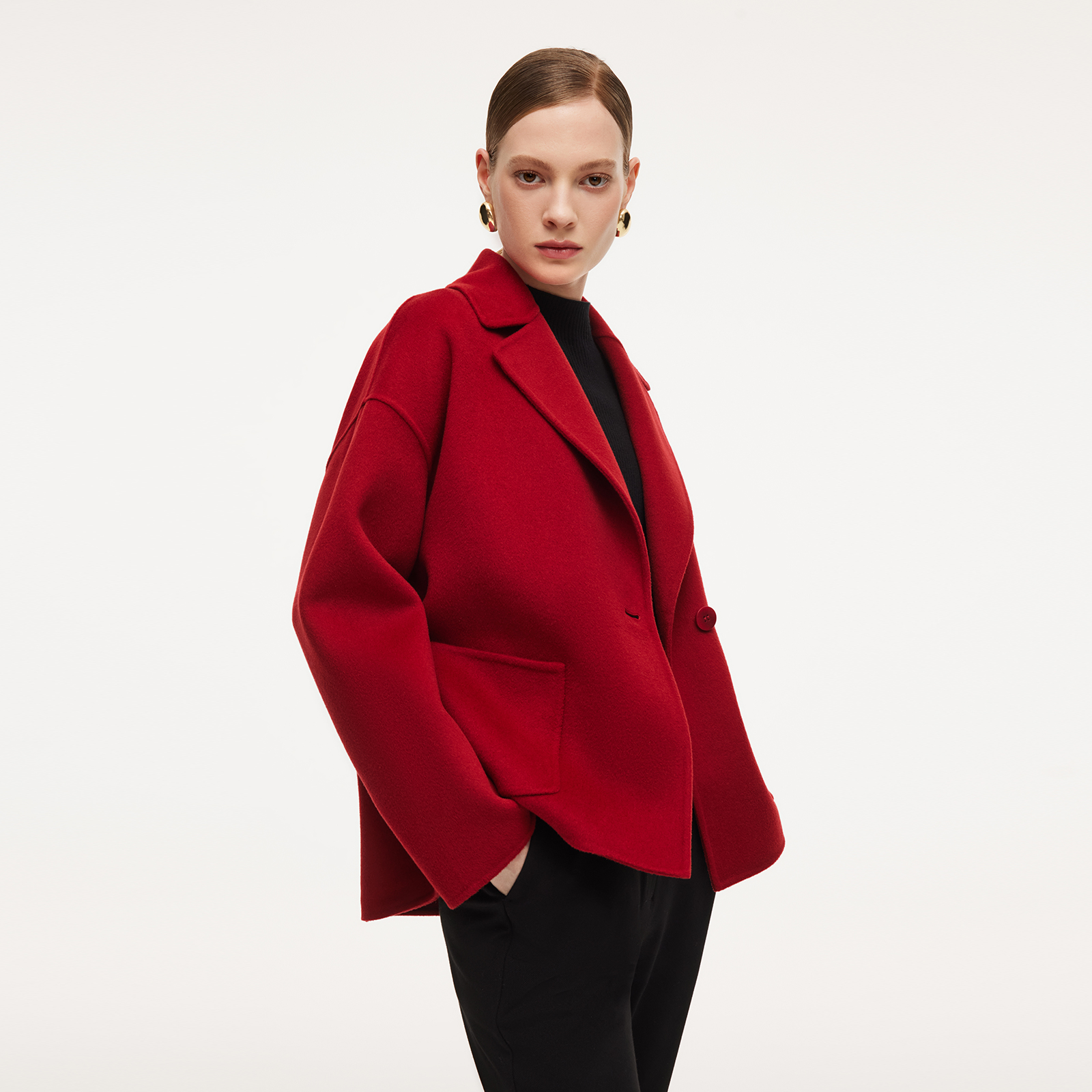 歌莉娅春季新品羊毛羊绒双面呢翻领短外套1F1L6N180