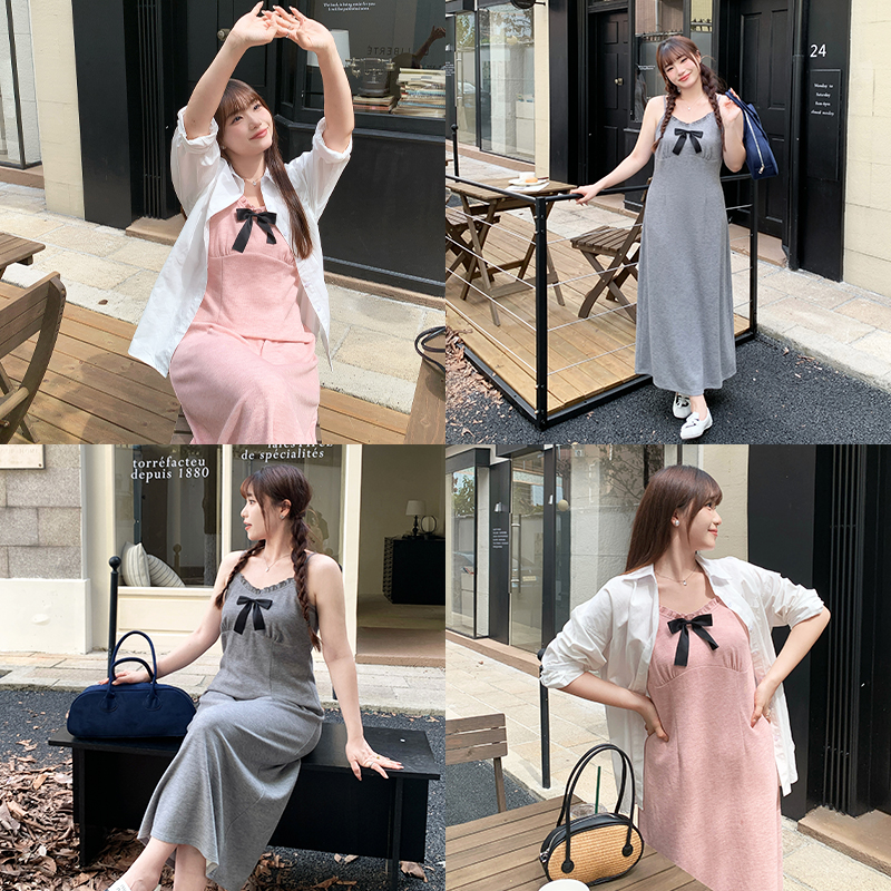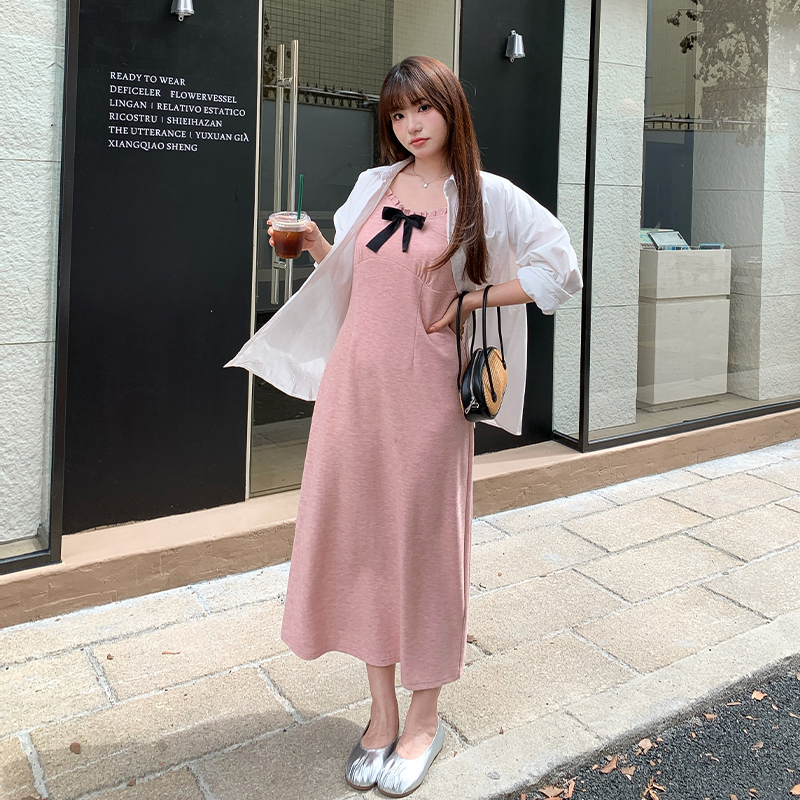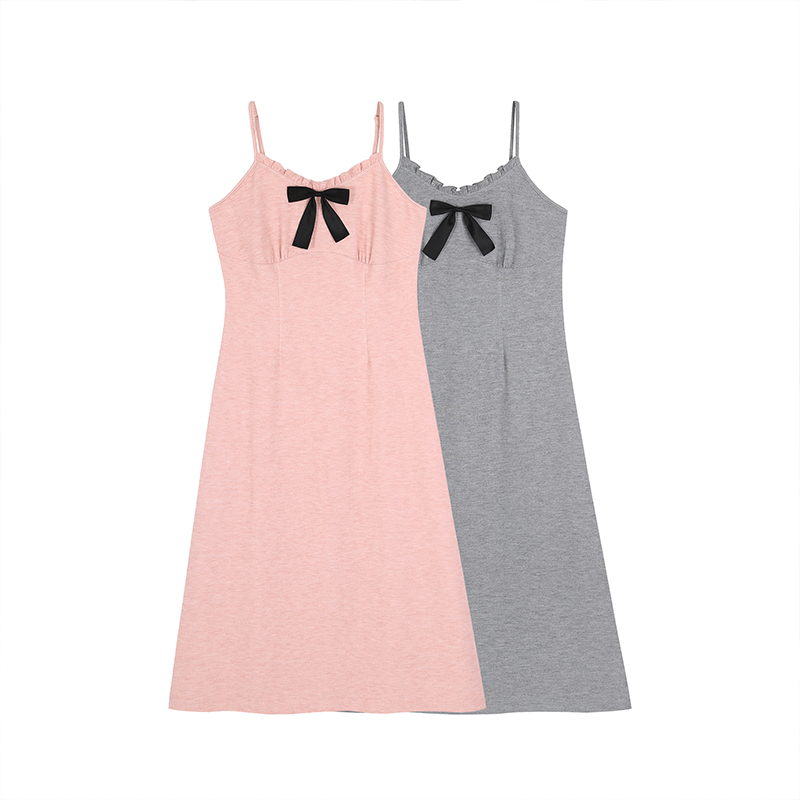 小波家2025秋季胖mm韩系气质撞色蝴蝶结吊带连衣裙