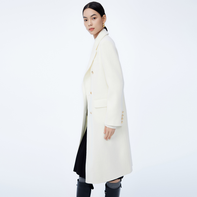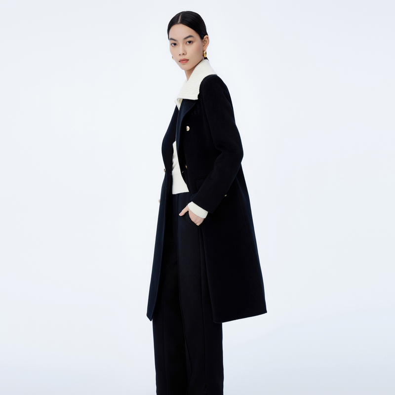 LILY冬新款女装全绵羊毛气质通勤优雅复古双排扣毛呢外套大衣