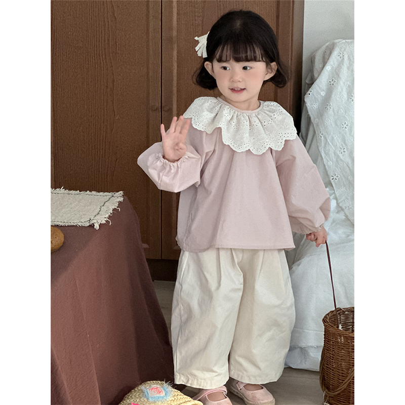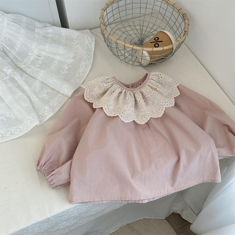 女童大花边领衬衫25秋森系儿童棉布粉色衬衣长袖宝宝娃娃衫宽松
