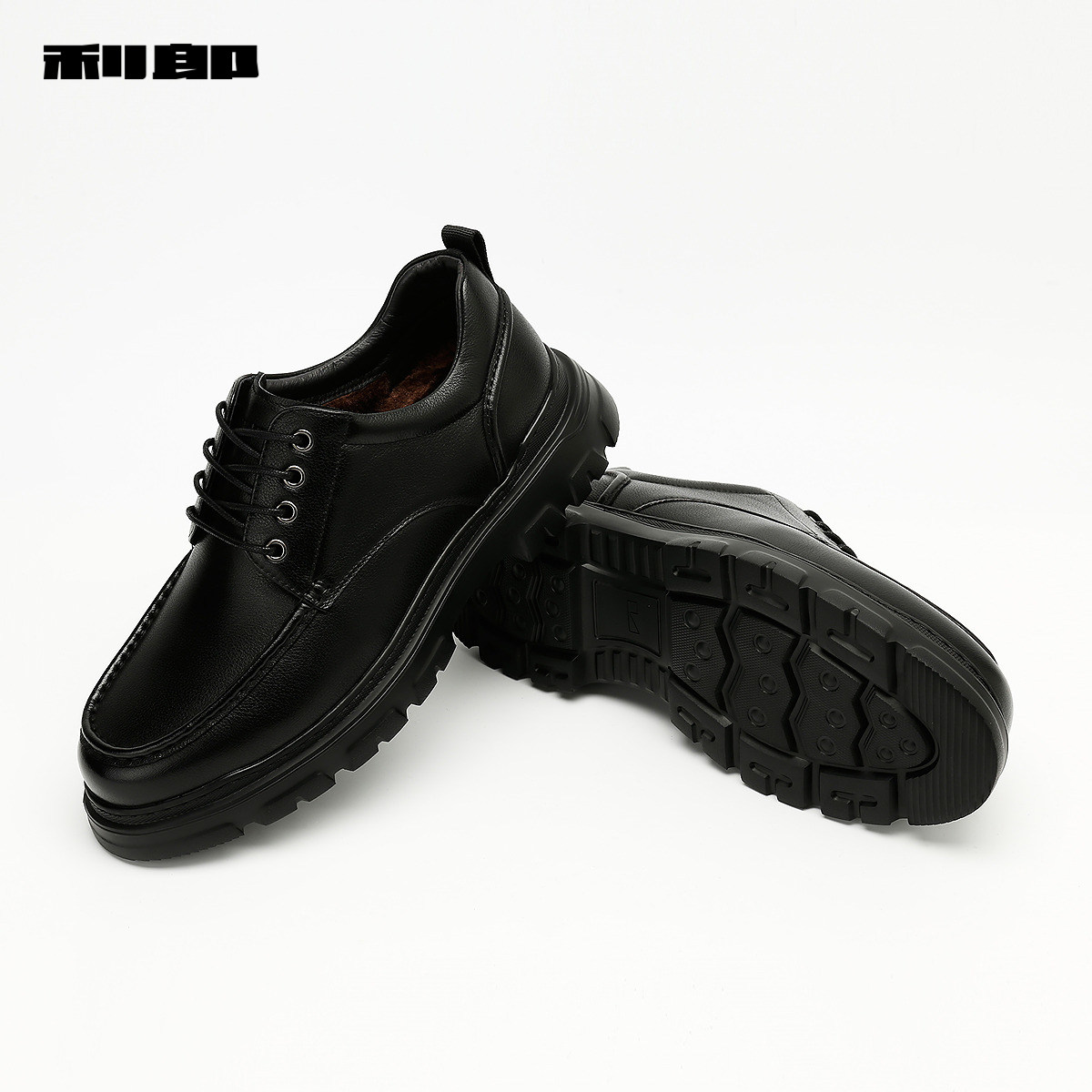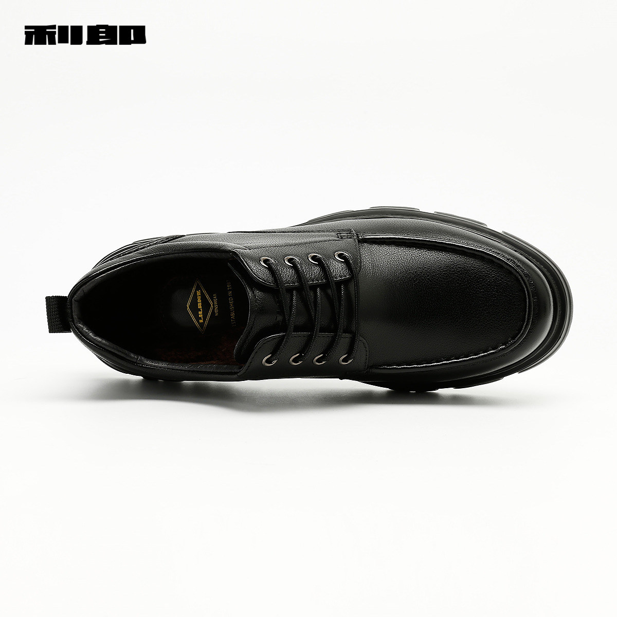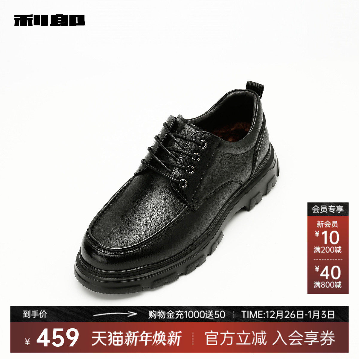 利郎官方 牛皮革时尚休闲皮鞋男士纯色系带2025冬季新款低帮鞋子
