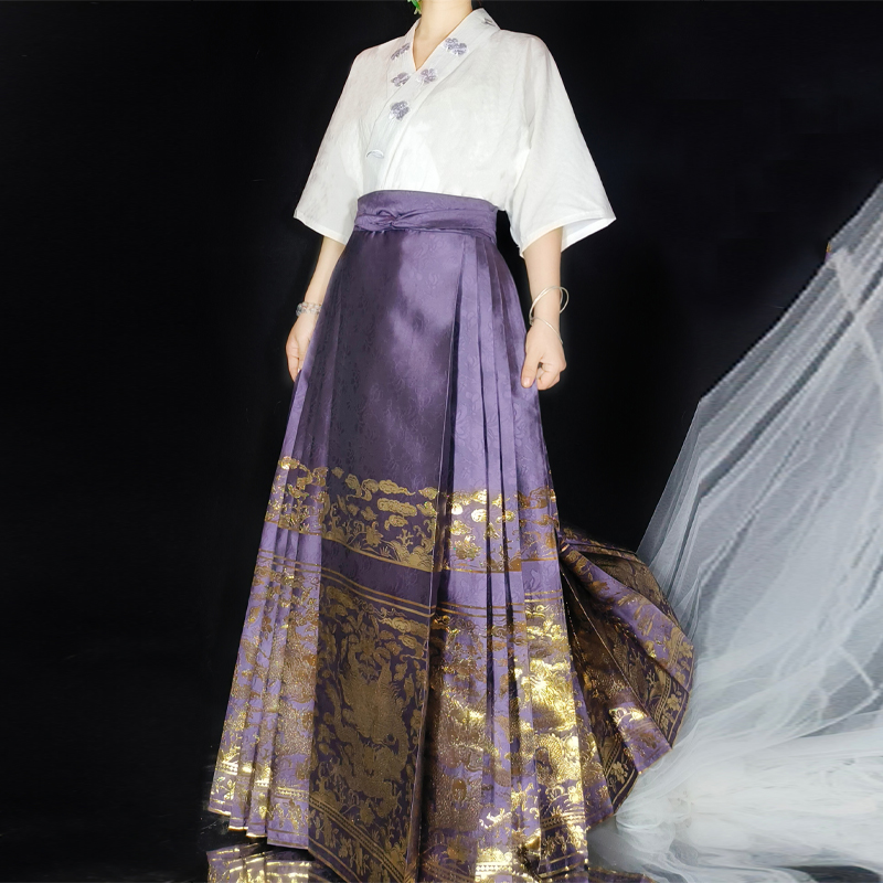 紫色龙纹马面裙2024新款汉服半身裙新中式古风大码胖mm夏季套装女