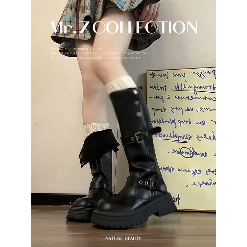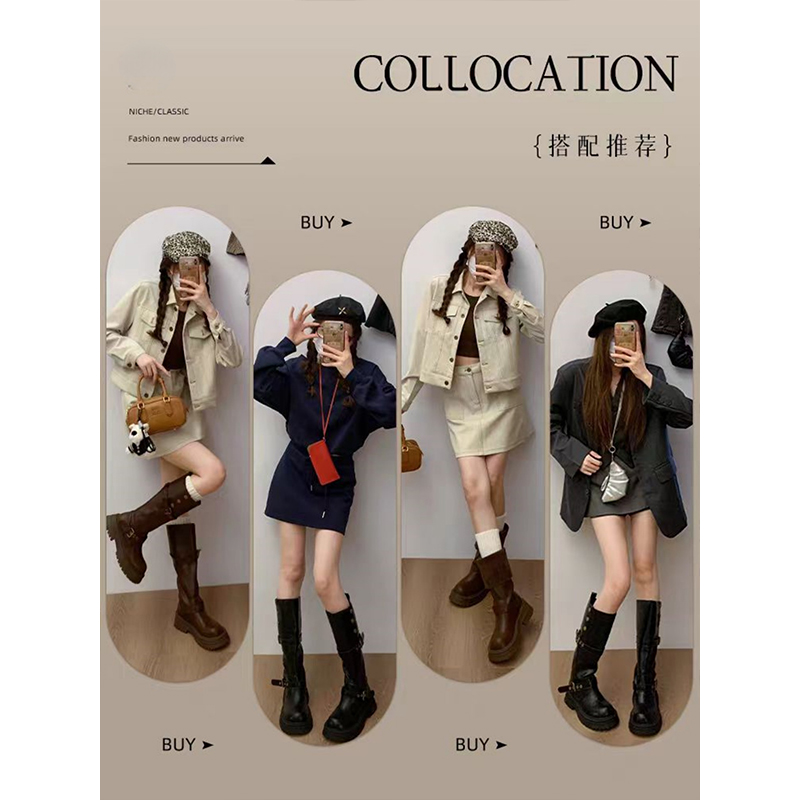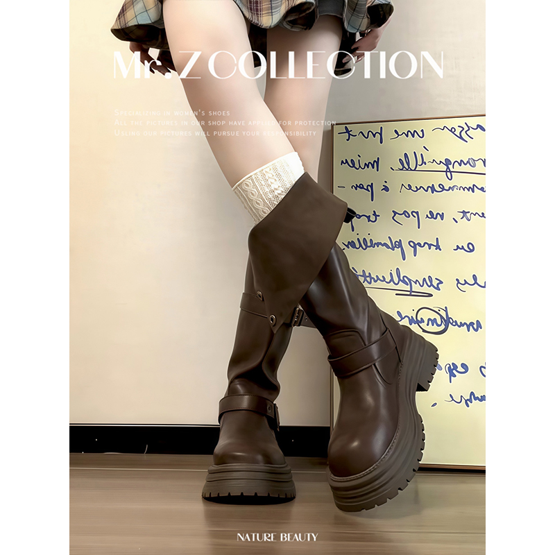西部靴牛仔靴子女夏季新疆长筒靴棕色美拉德骑士靴厚底马丁靴中筒
