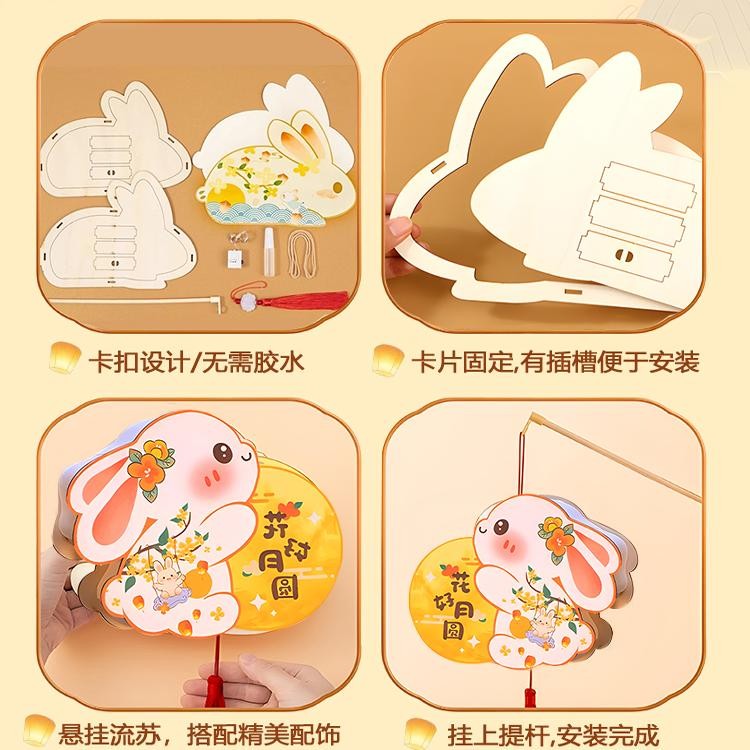 中秋节儿童自制手提灯古风自制手工diy材料包月兔灯笼花灯6幼儿园
