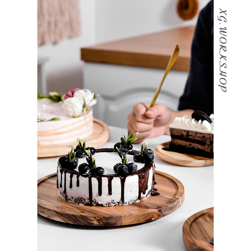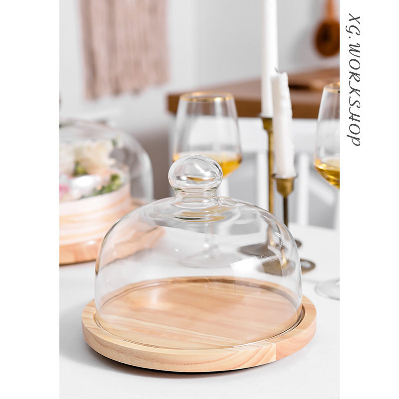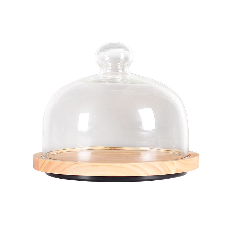 木制欧式蛋糕盘创意水果盘客厅旋转家用玻璃盖烘焙托盘制作台蛋糕