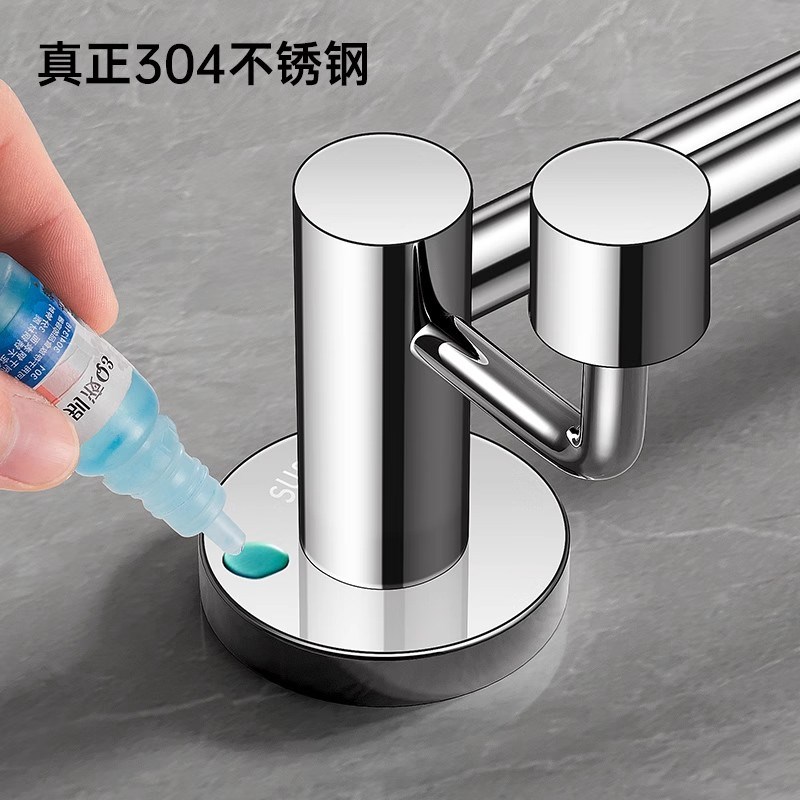 毛巾架304不锈钢毛巾杆单杆卫生间双杆浴M巾架免打孔浴室架子挂杆