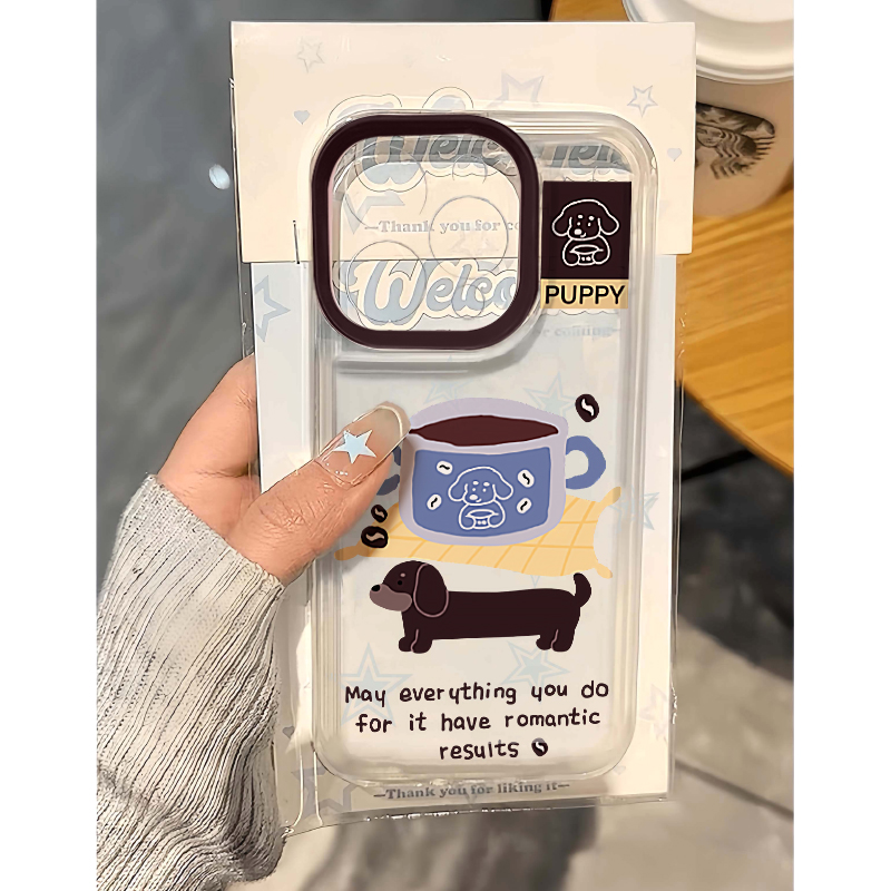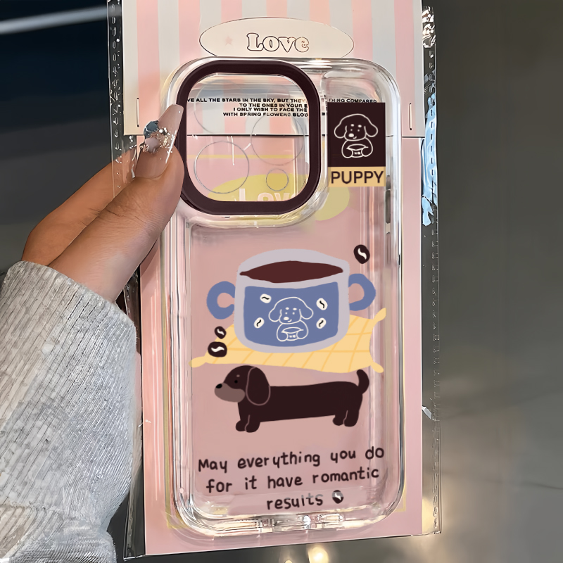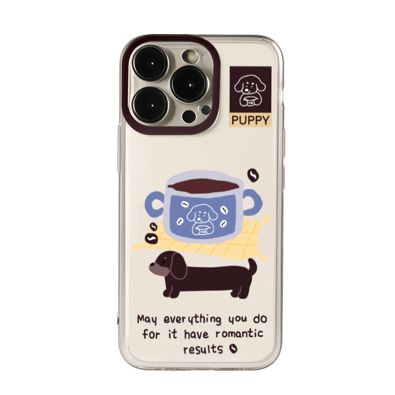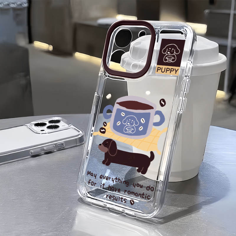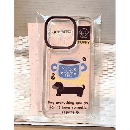 咖啡豆腊肠狗适用苹果15手机壳12/11卡通vivox100透明红米note13防摔小米14一加套华为pura70荣耀200软壳OPPO