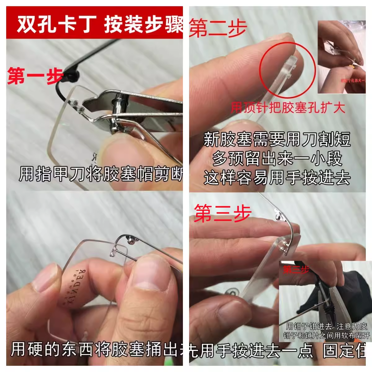 来镜换架小红书同款无框眼镜架钛合金双孔卡丁配件男女更换镜腿
