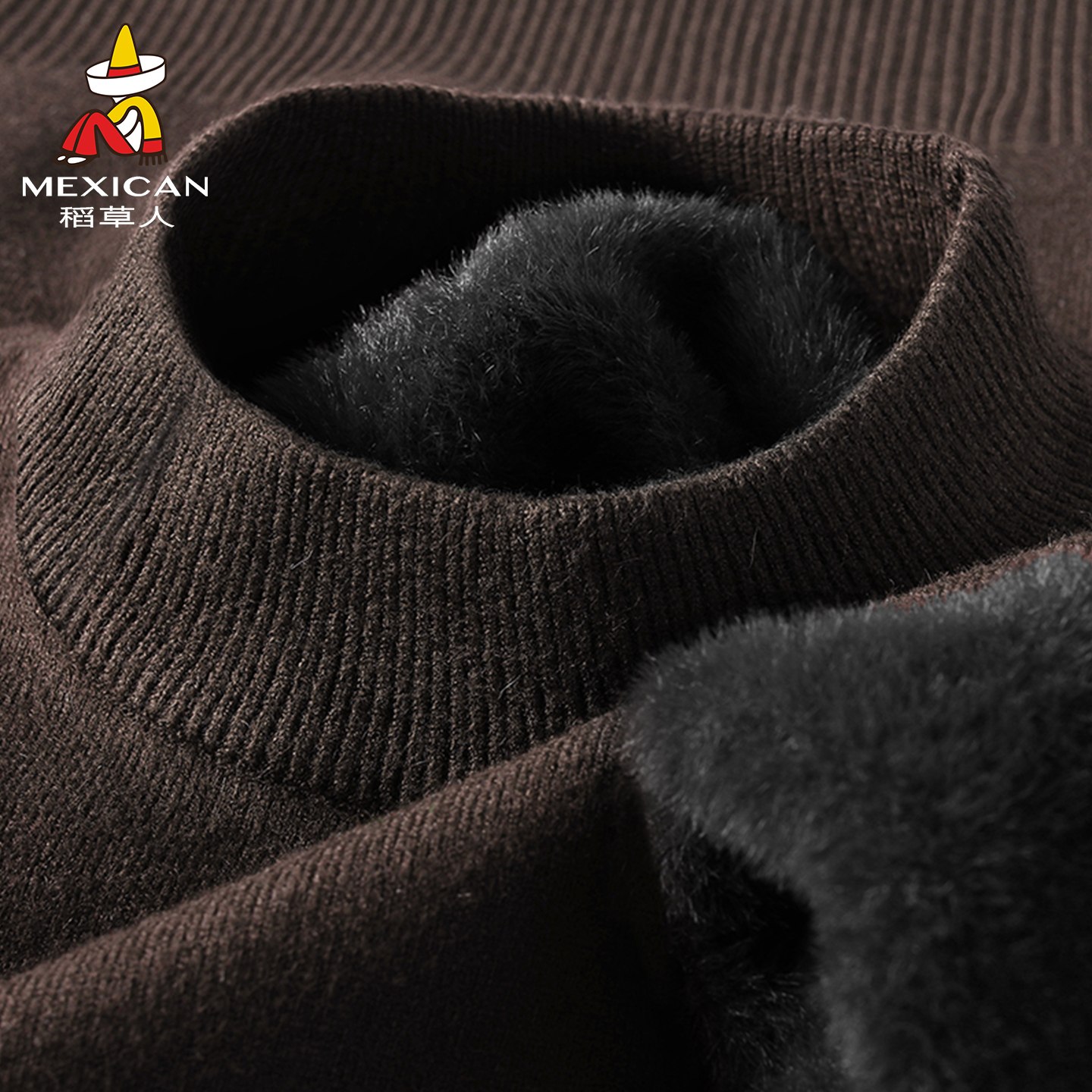 稻草人半高领纯色一体绒毛衣男款秋冬季加绒加厚针织衫保暖内搭J