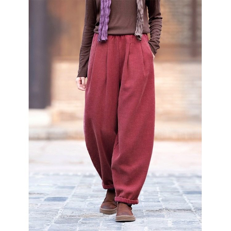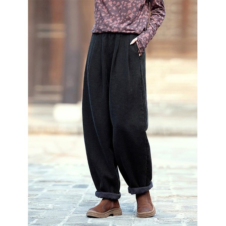 棉麻裤子女秋冬季新款苎麻灯笼裤小个子加绒加厚萝卜裤女保暖棉裤