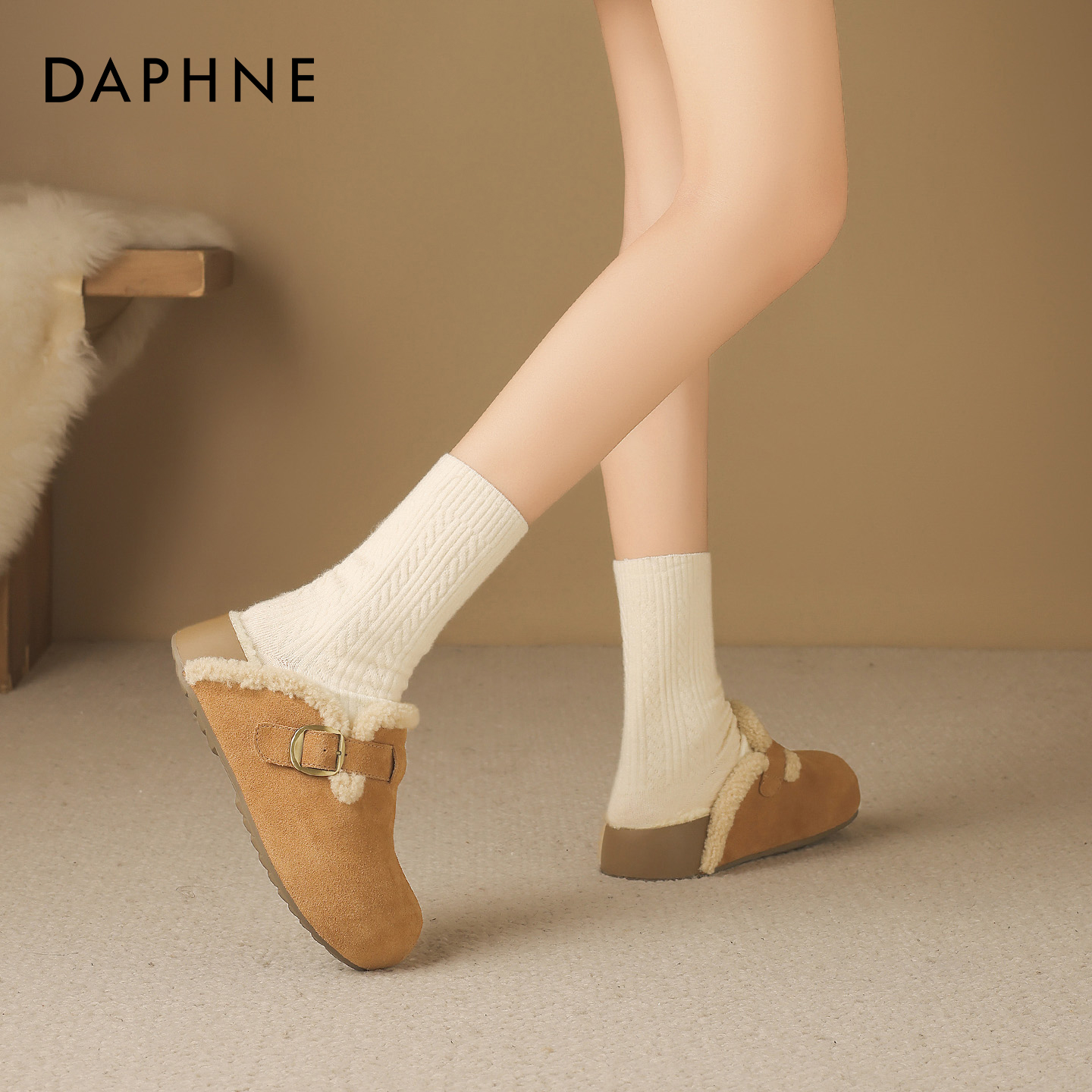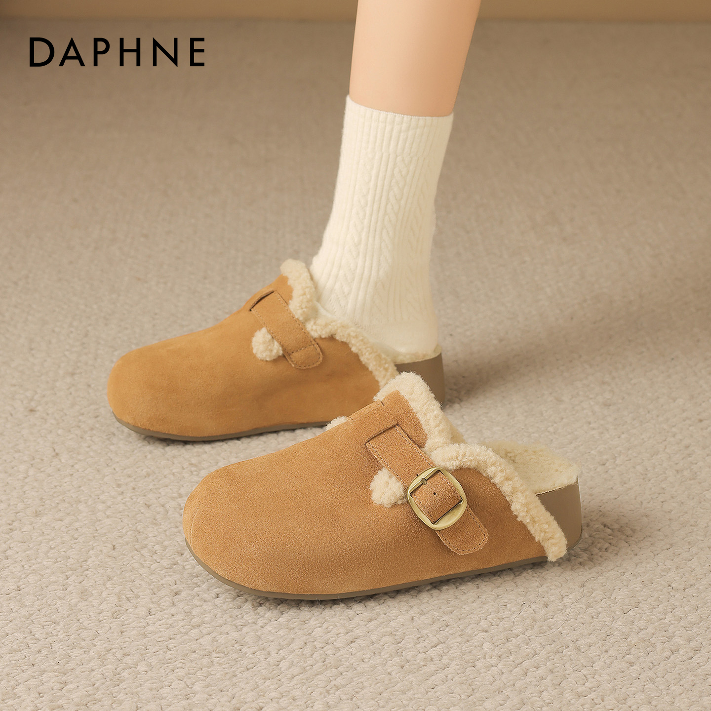 达芙妮厚底勃肯鞋女2025新款冬季保暖加绒毛毛鞋玛丽珍包头拖鞋子
