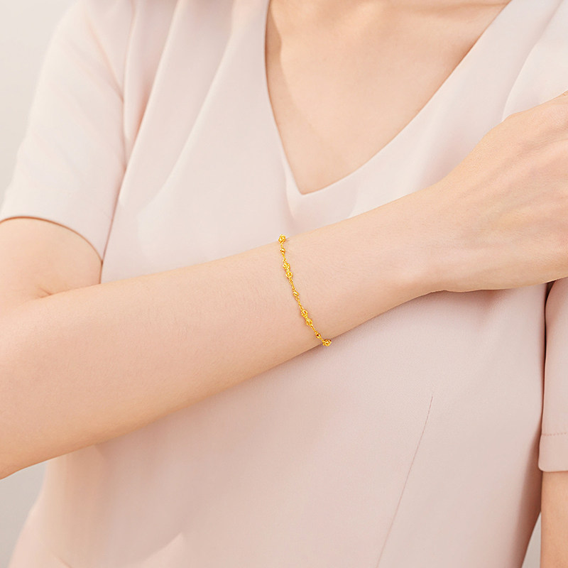 老庙黄金足金金刚杵手足链5G精致立体禅意东方时尚璀璨通勤百搭