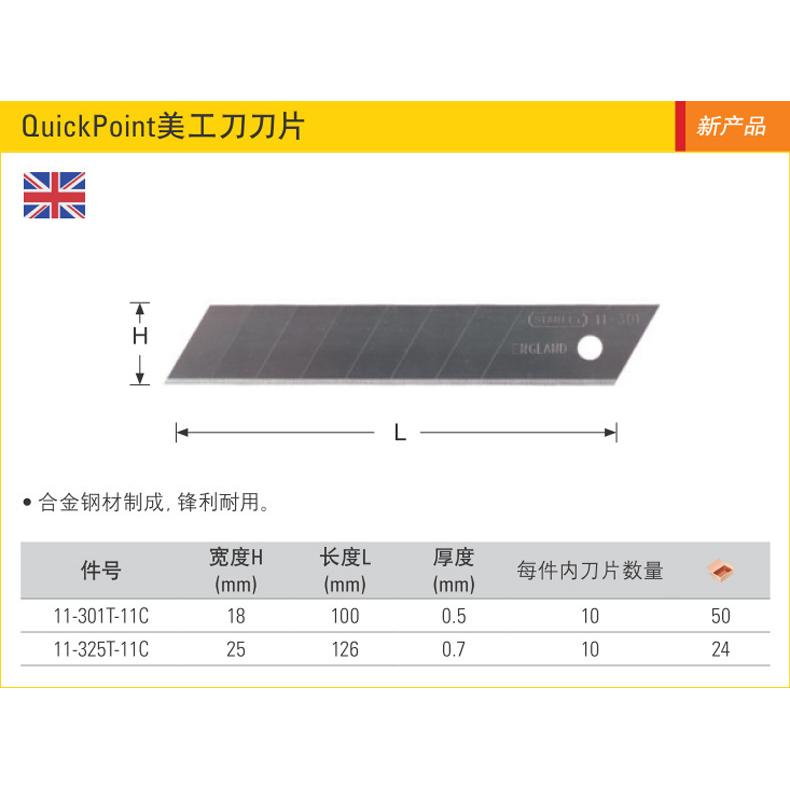 STANLEY史丹利QuickPoint美工刀刀片11-301T-11C 18mm刀片一盒