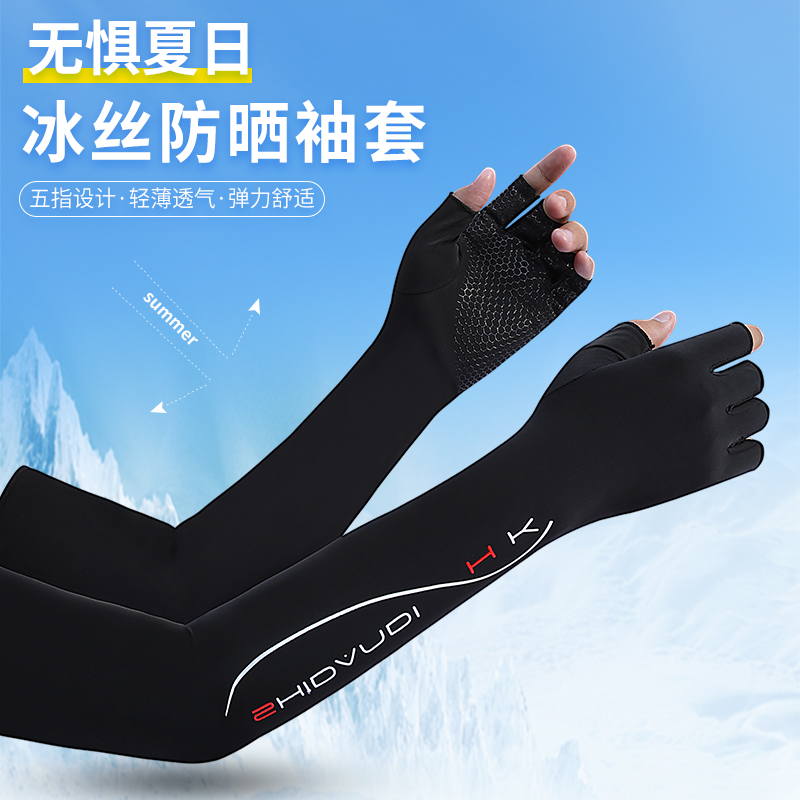男女夏季冰爽长款防晒手套防紫外线薄款冰丝开车冰袖护臂骑行手套