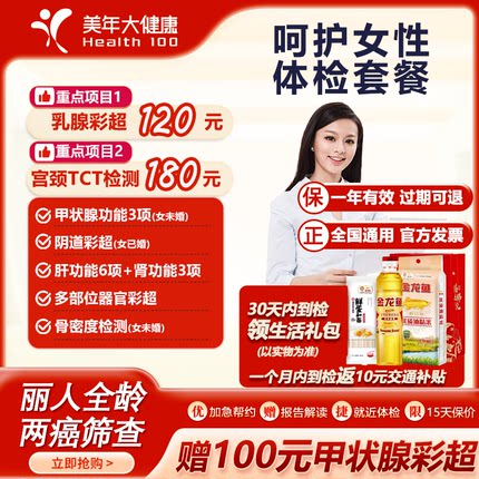 美年大健康呵护女性体检套餐 妇科TCT甲状腺胸部DR 中青老年全身