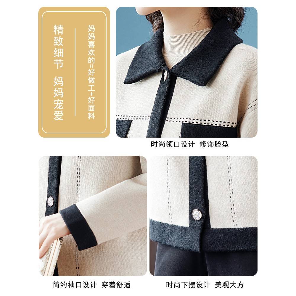 新款妈妈春装气质上衣中年女春秋洋气大码毛呢中老年短款呢子外套