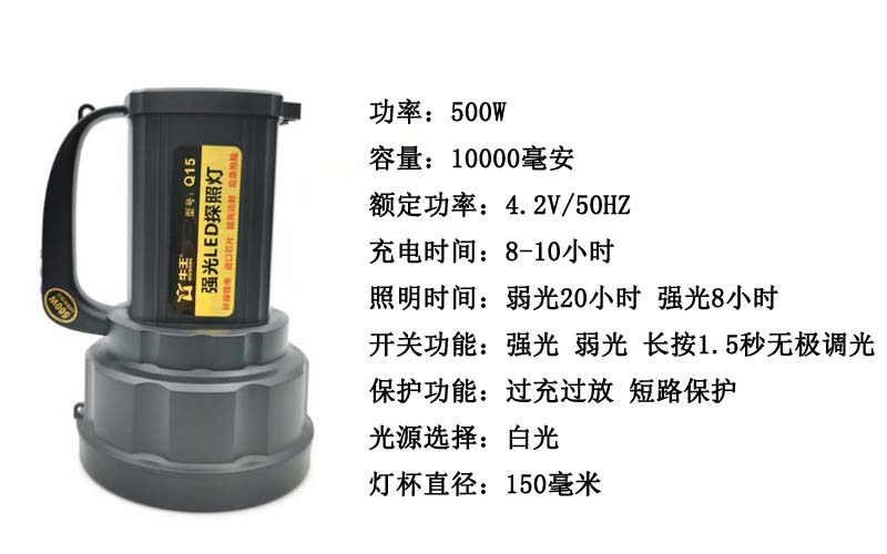 牛王手提灯500W大功率Q15强光防水手电筒 户外野外矿灯强光探照灯