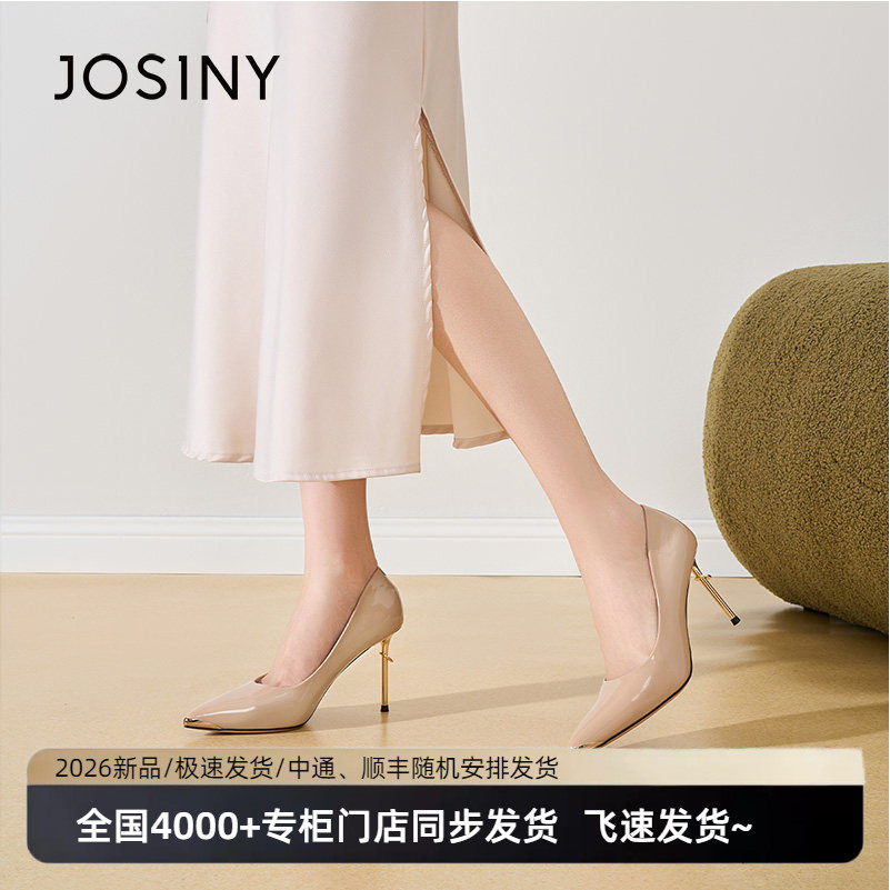 卓诗尼2026春季款尖头高跟鞋女亮漆皮时尚性感宴会赴宴气质鞋