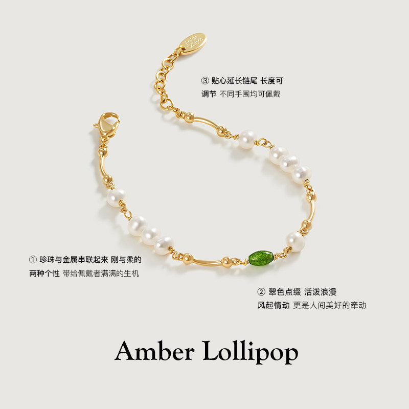 AmberLollipop淡水珍珠手链女轻奢小众宝石手串气质百搭手链