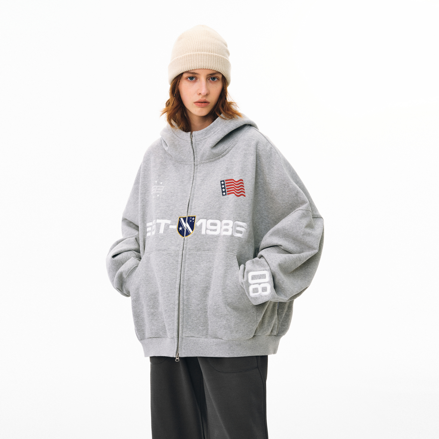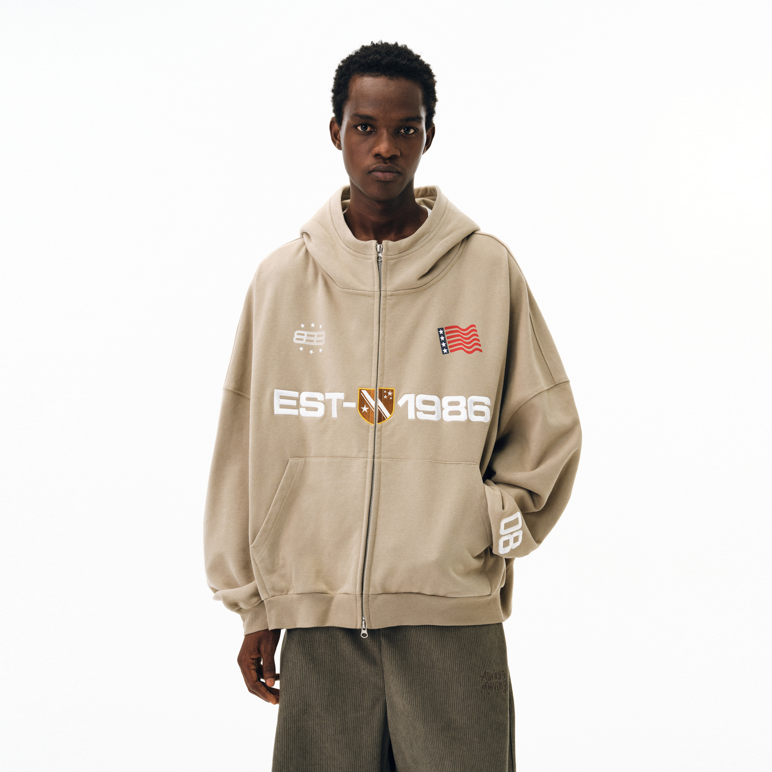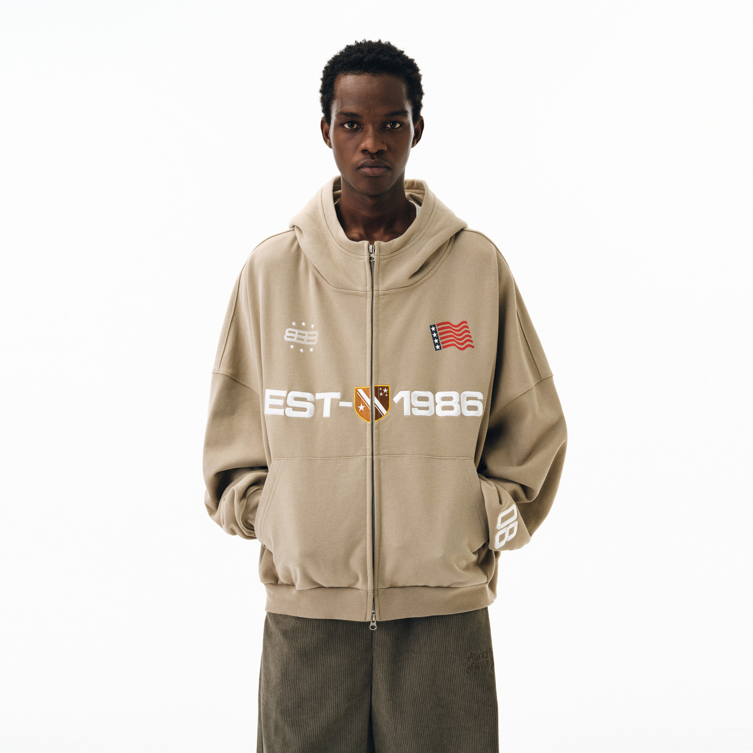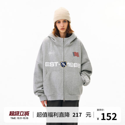FPA刺绣胸章高领拉链帽衫 2025新款春秋装国潮牌宽松情侣开衫卫衣