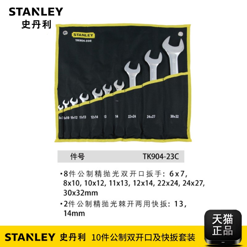 史丹利6件/10件/13件公制双开口及快扳套装棘开快速两用扳手TK904