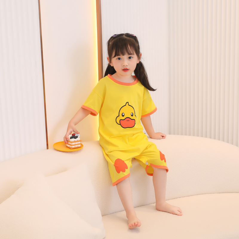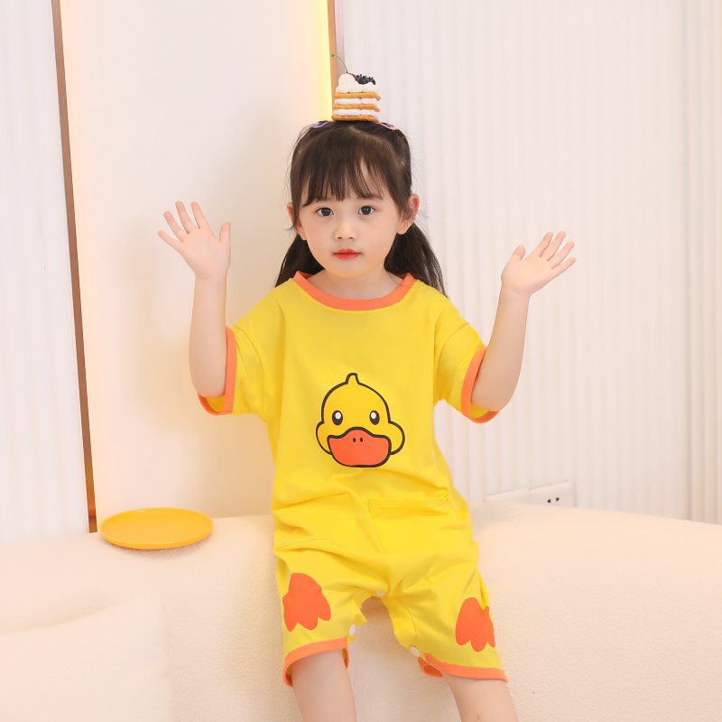 儿童纯棉连体睡衣夏季薄款短袖睡裙男女童防踢睡袍宝宝家居空调服
