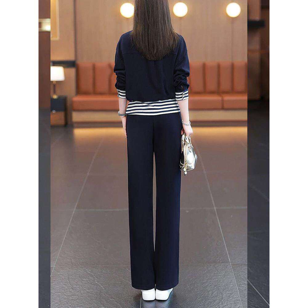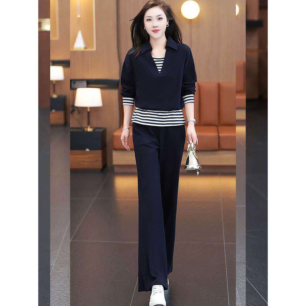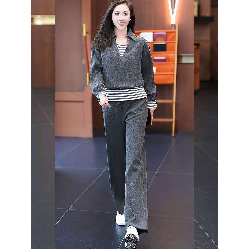 洋气减龄显瘦假两件休闲套装女春季新款时尚遮肉百搭设计感两件套