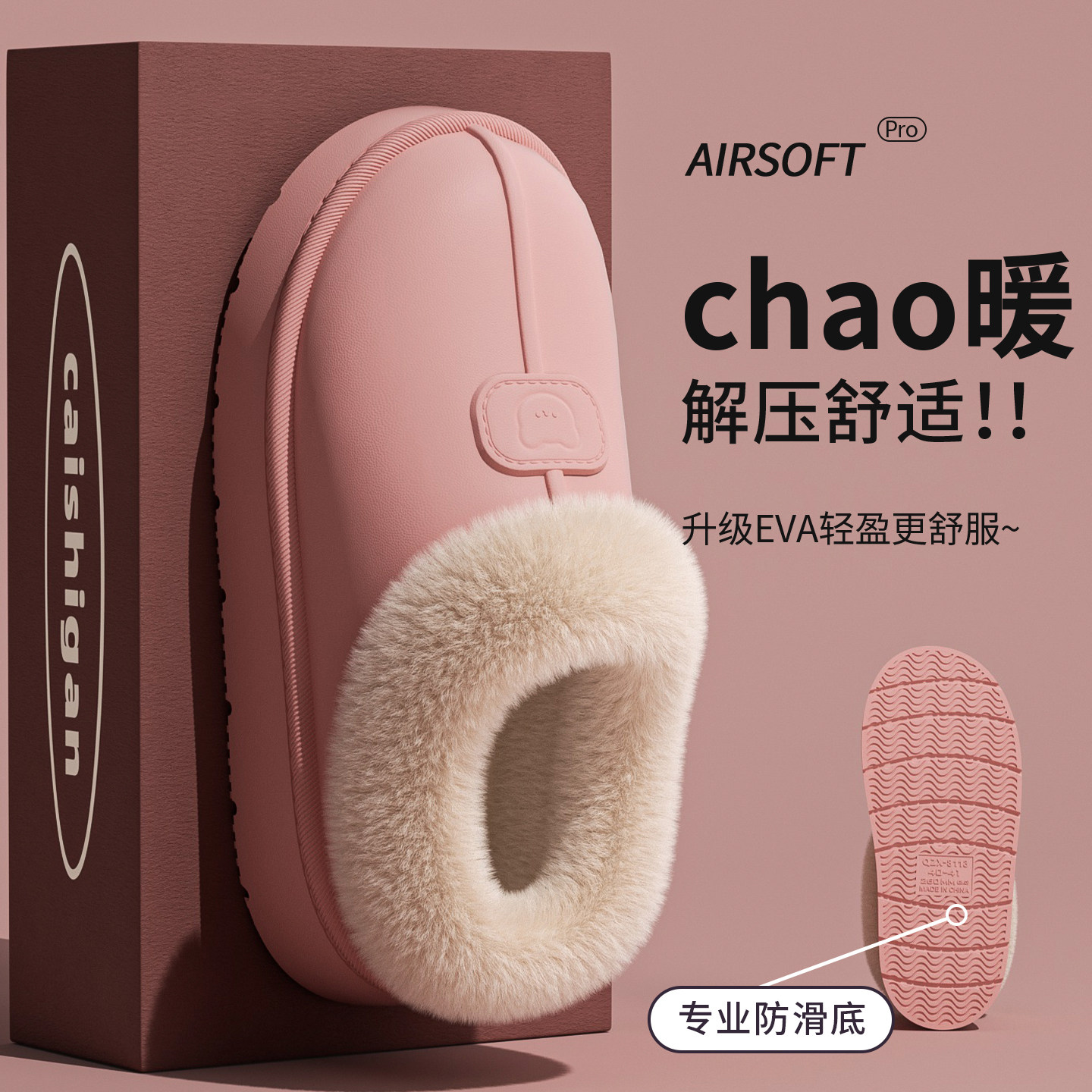 防水棉拖鞋女防滑包跟厚底保暖
