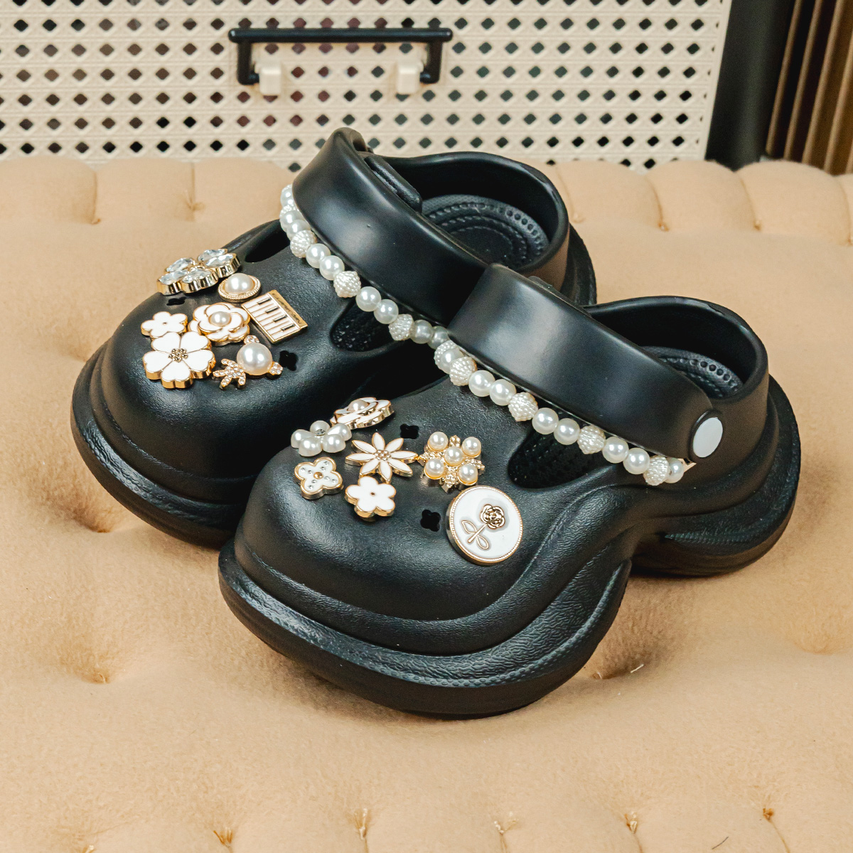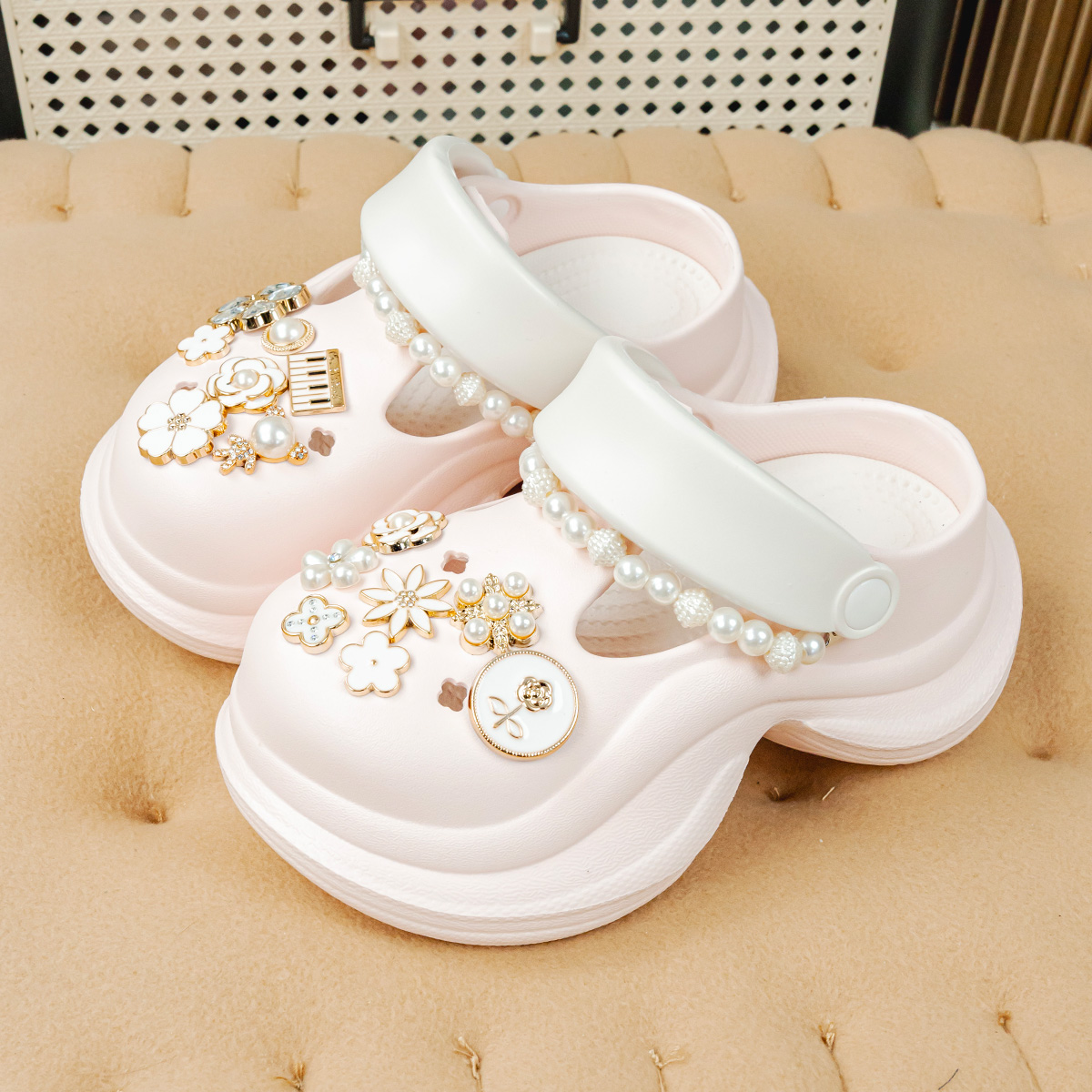 新款珍珠钢琴花女洞洞鞋亲子外穿时尚穿搭拖鞋防滑增高包头鞋
