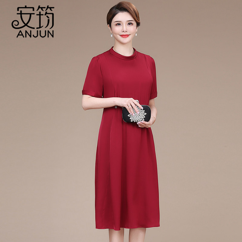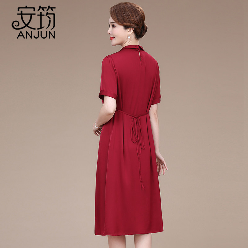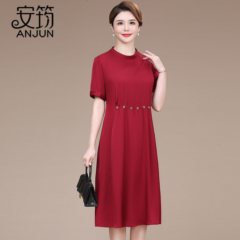 品牌真丝桑蚕丝连衣裙2022新款正品杭州丝绸中年妈妈气质收腰中裙