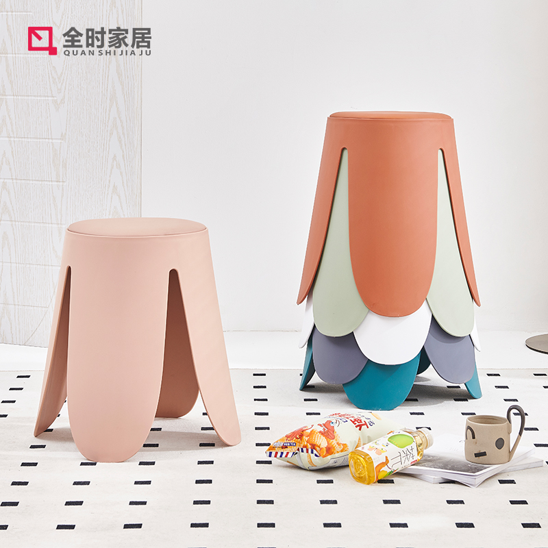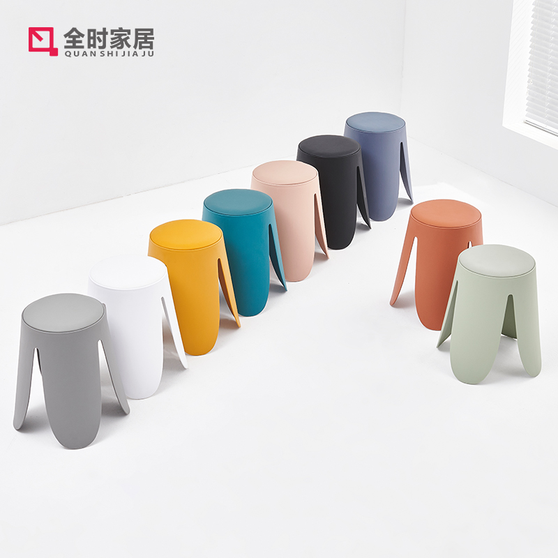 塑料凳子家用可j叠放餐桌凳奶油风客厅高板凳创意商用加厚备用圆