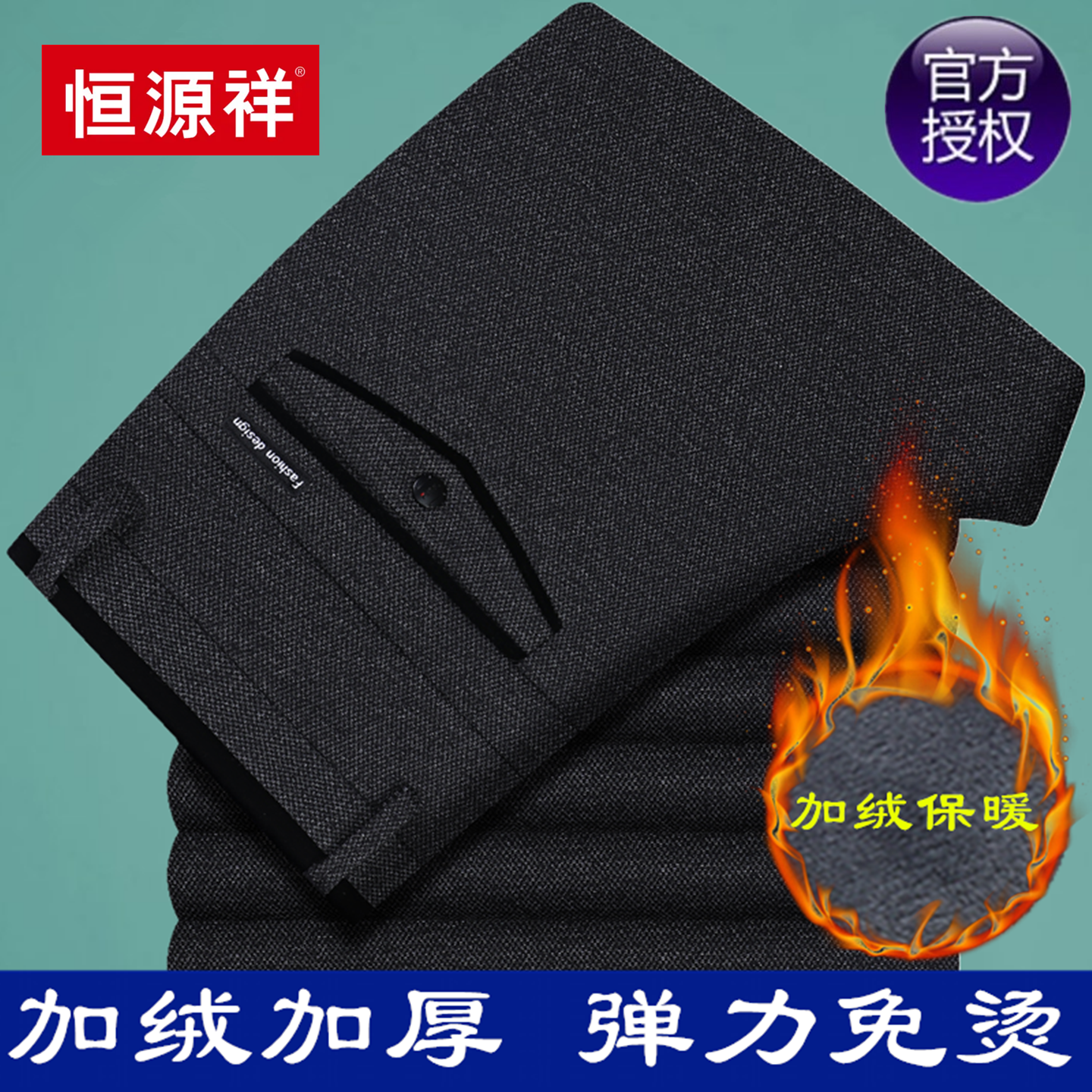 恒源祥2025新款冬季加绒加厚休闲裤男中年商务直筒西裤保暖男裤子
