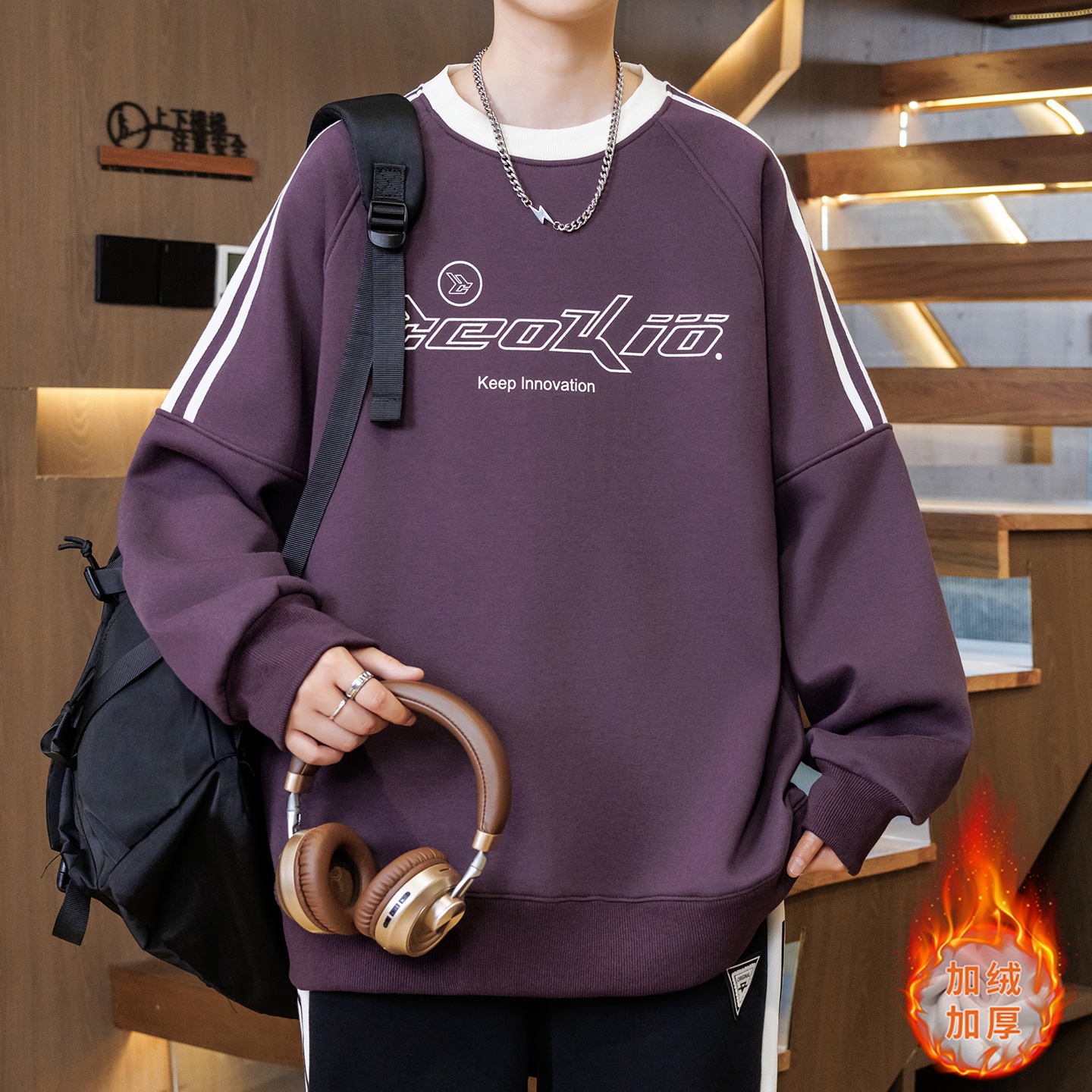 秋冬季加绒圆领卫衣男孩青少年学生潮流帅气打底衫大童加厚上衣