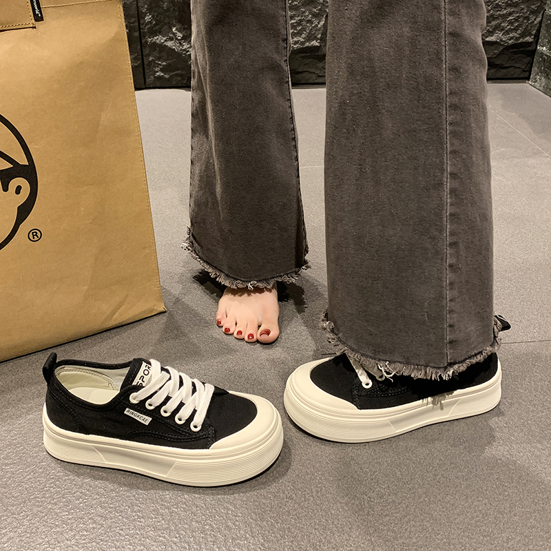 厚底帆布鞋女2025夏季新款爆款百搭复古透气增高学生休闲运动板鞋
