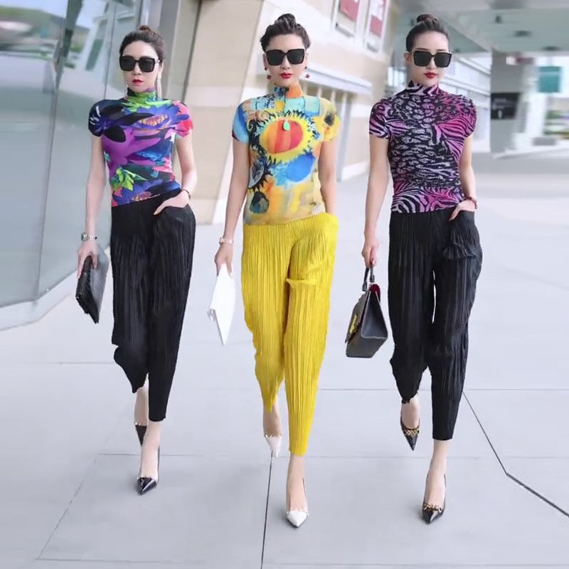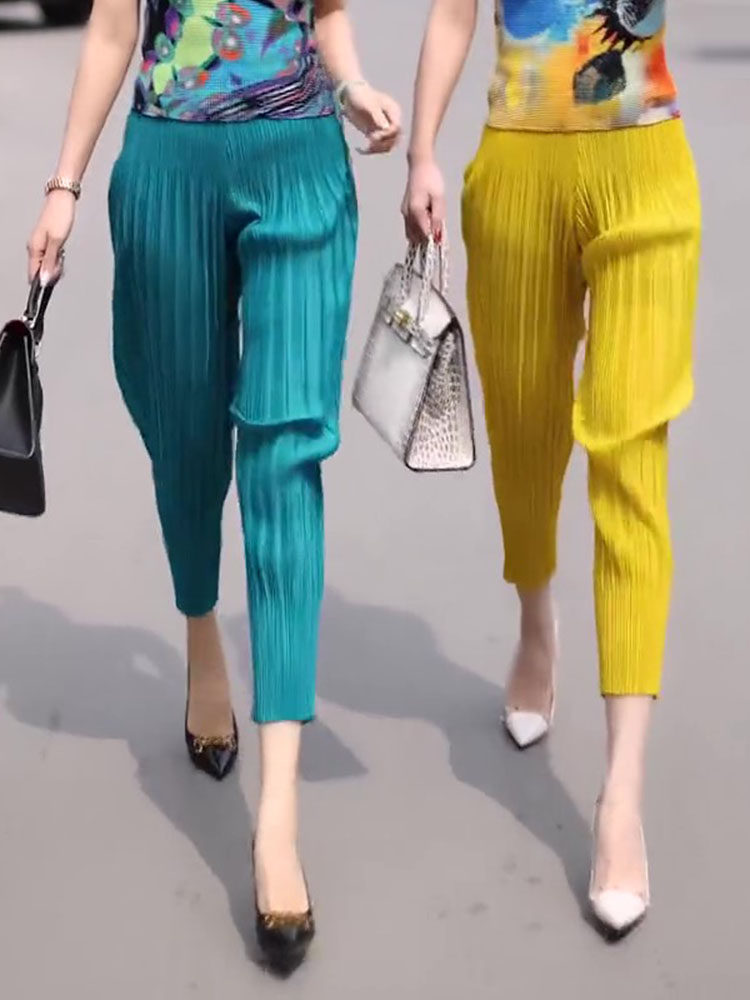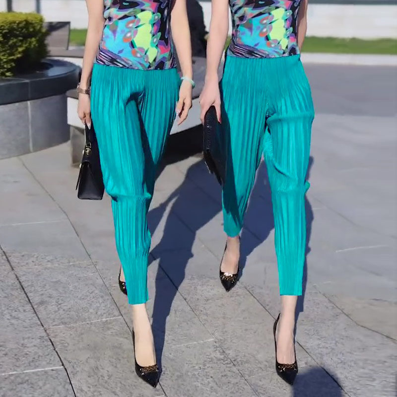 春夏褶皱哈伦裤女春夏显瘦百褶小脚裤宽松大码老爹裤休闲萝卜裤子