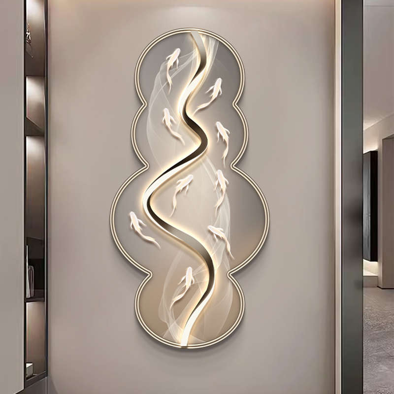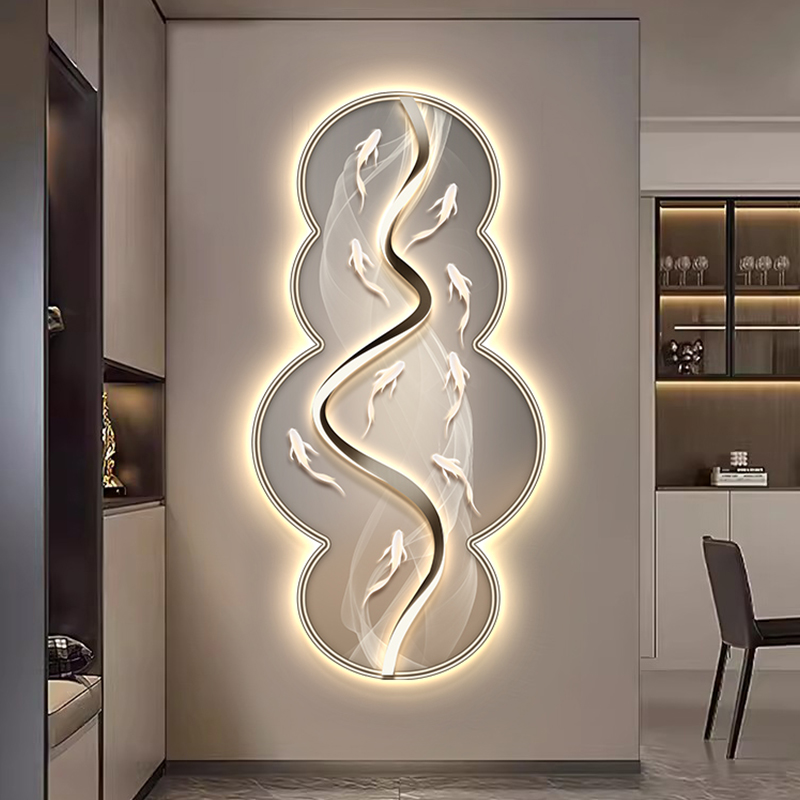 轻奢九鱼现代玄关装饰画创意客厅挂画走廊过道餐厅无框氛围灯壁画