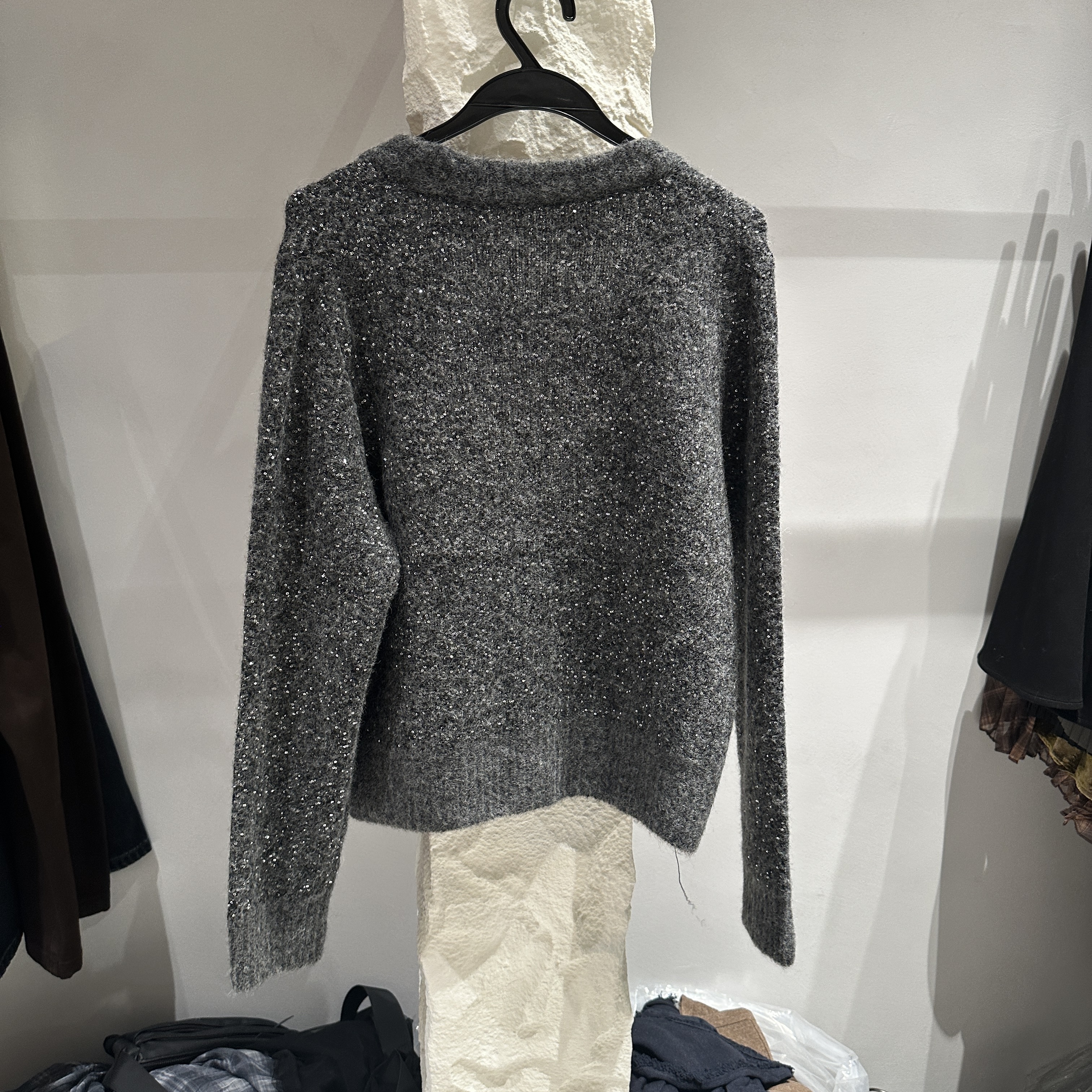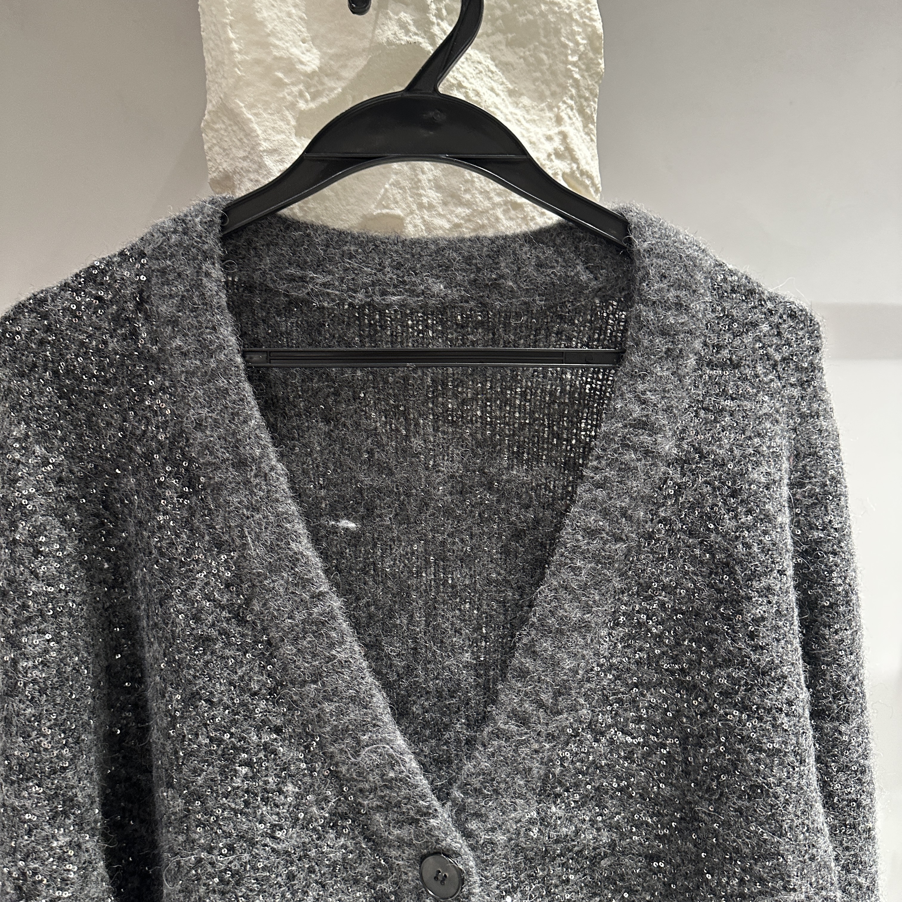 欧洲站2025秋季新款V领三粒扣百搭软糯舒适单穿亮丝羊毛针织开衫