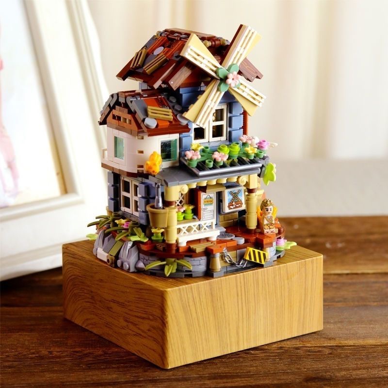 LOZ风车屋八音盒积木音乐盒立体小屋房子模型男女孩古风生日礼物
