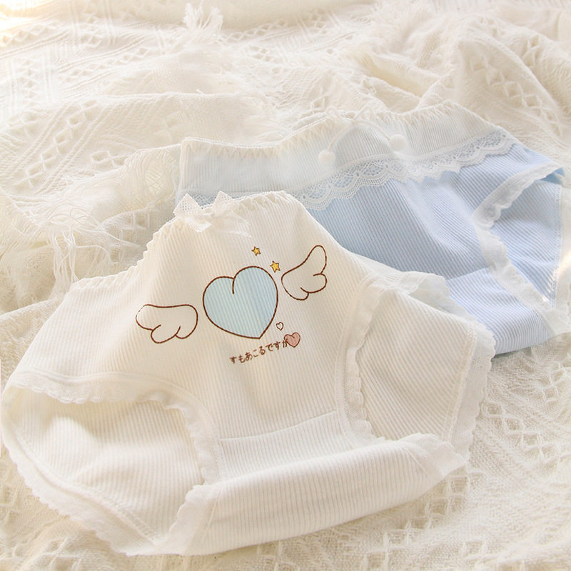 日系清新可爱天使翅膀螺纹棉质三角裤纯棉裆蝴蝶结中腰少女内裤