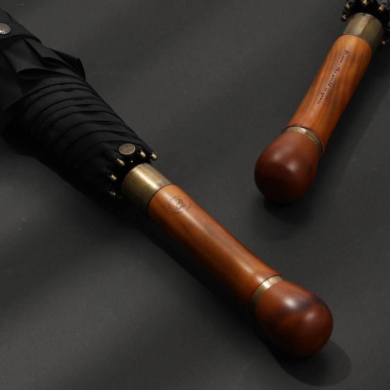 英伦复古木柄男士半自动长柄雨伞大号双人结实抗风商务直柄伞定制